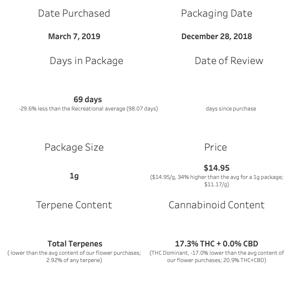 This was purchased on the Alberta Cannabis online store, price on this single gram of Galiano was $14.95 per gram, which is a 30% premium over the average for the store. Is it worth it? You bet.