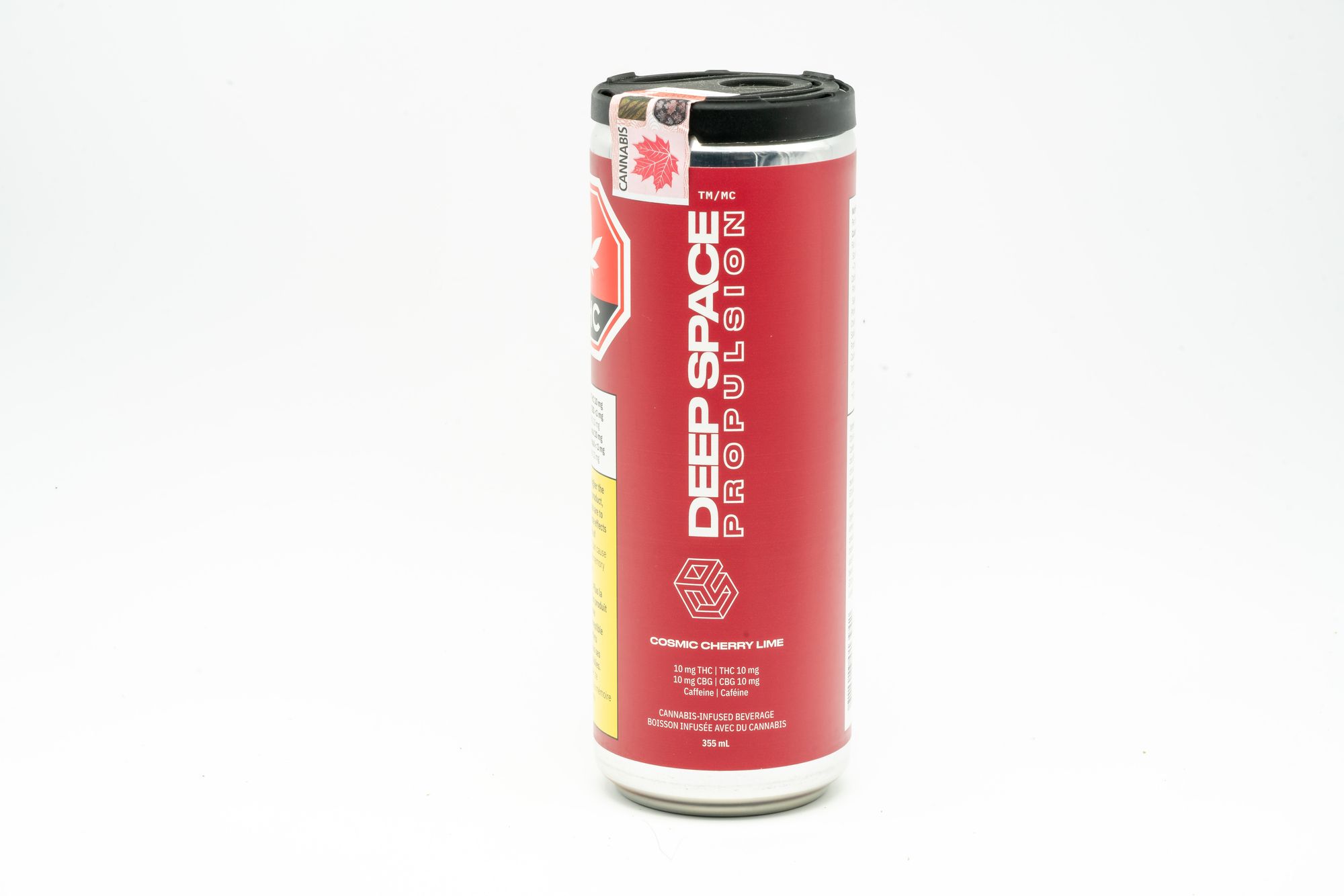Today, we are reviewing Deep Space Propulsion Cosmic Cherry Lime, which is a cannabis-infused beverage containing 10 mg of THC, 10 mg of CBG, and caffeine.