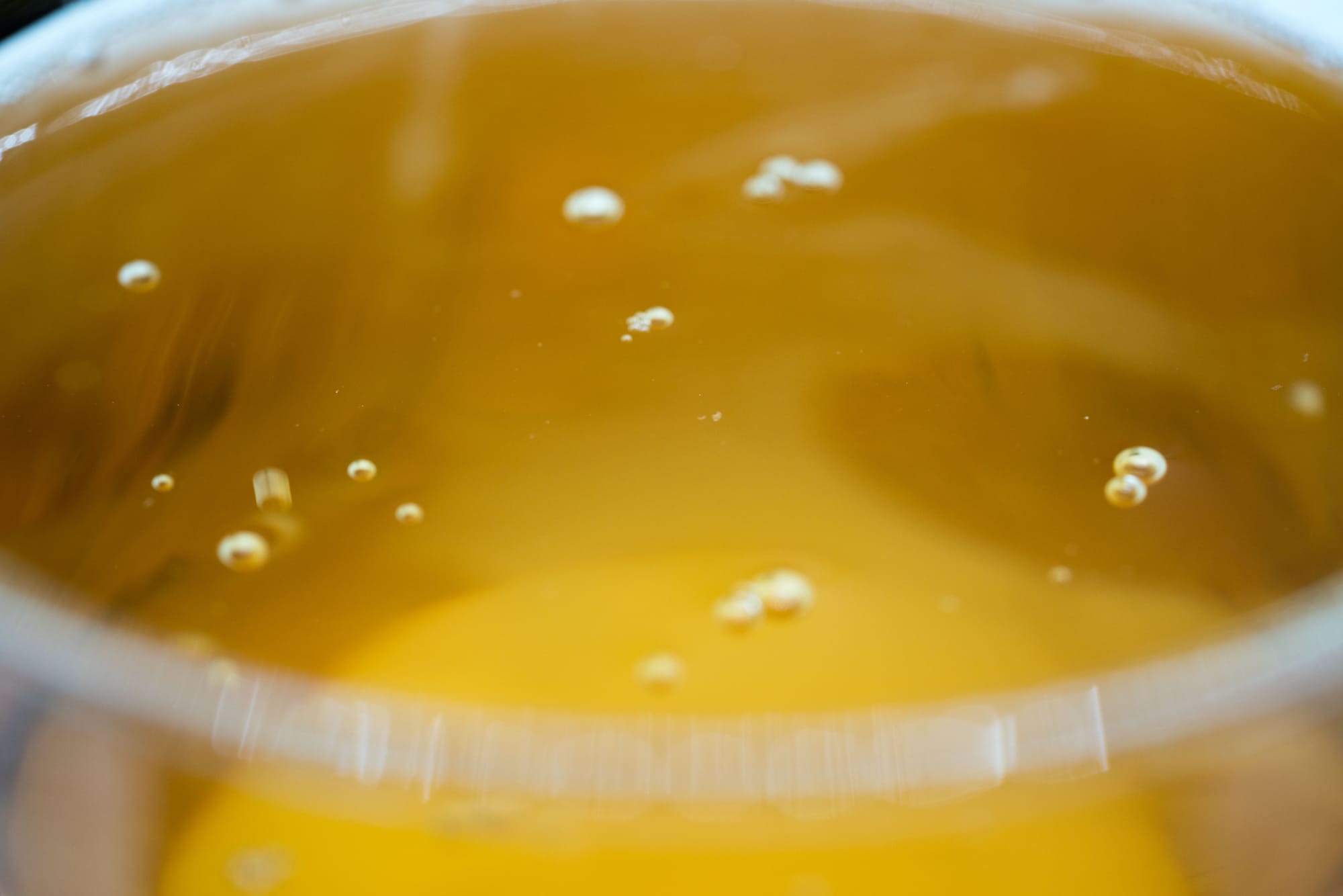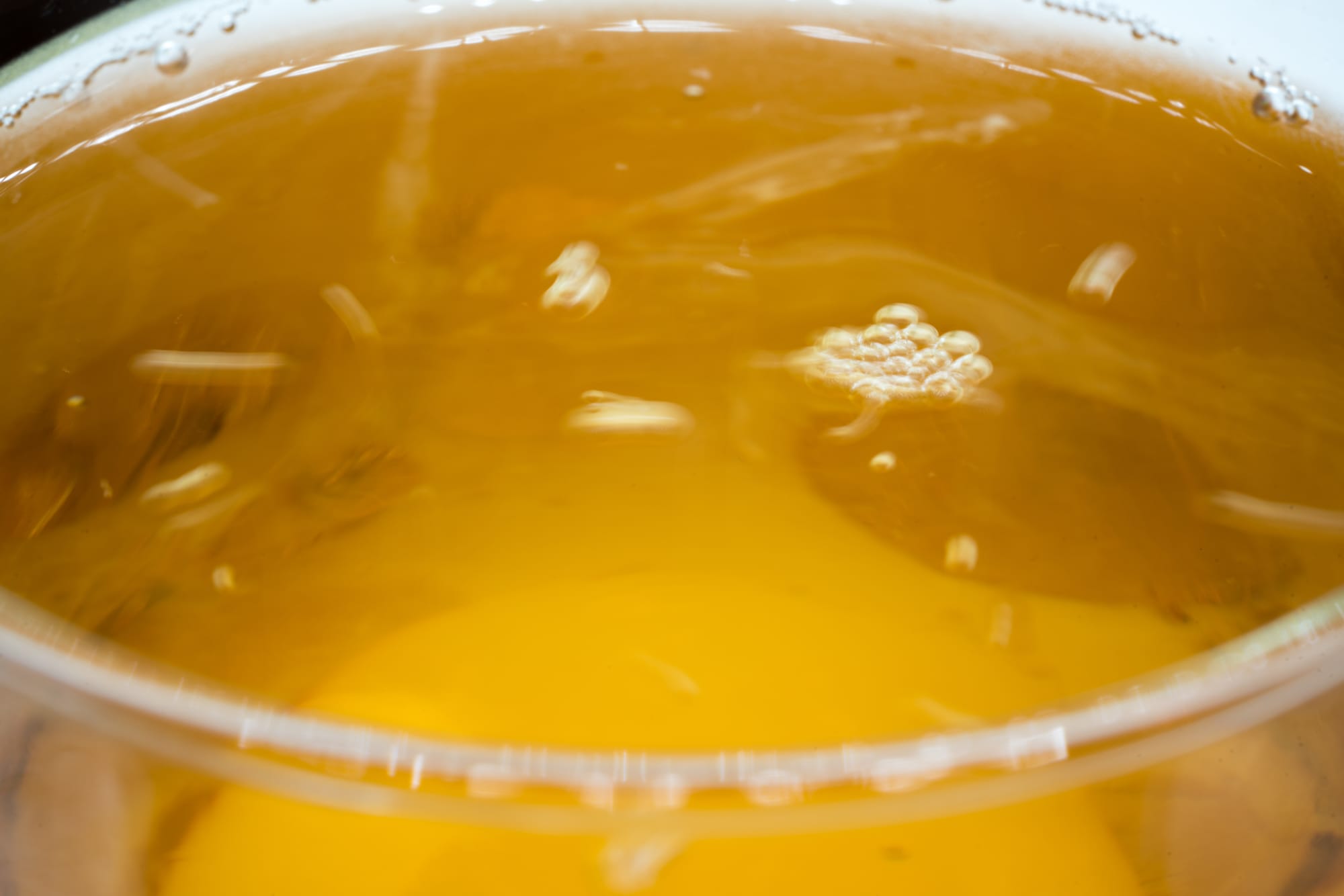 Transparent liquid with a nice amber colour. Looks like apple juice with a bit of carbonation.