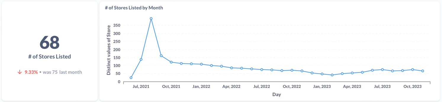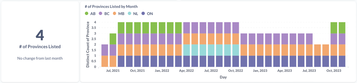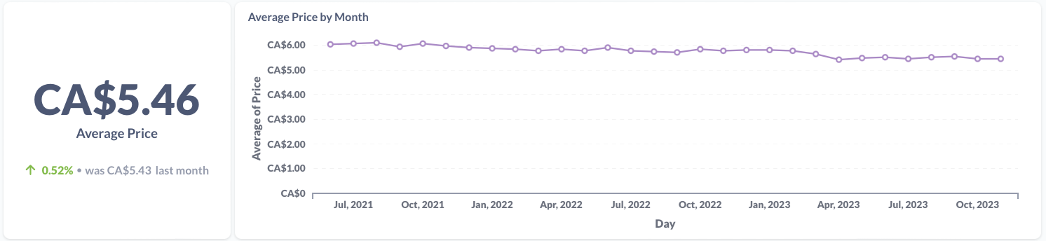 Next we bring in several market measures for this item using data from CannStandard. This data was obtained from public listings for legal cannabis products in Canada. We've provided the data as they were in the last complete month they were available (November 2023).