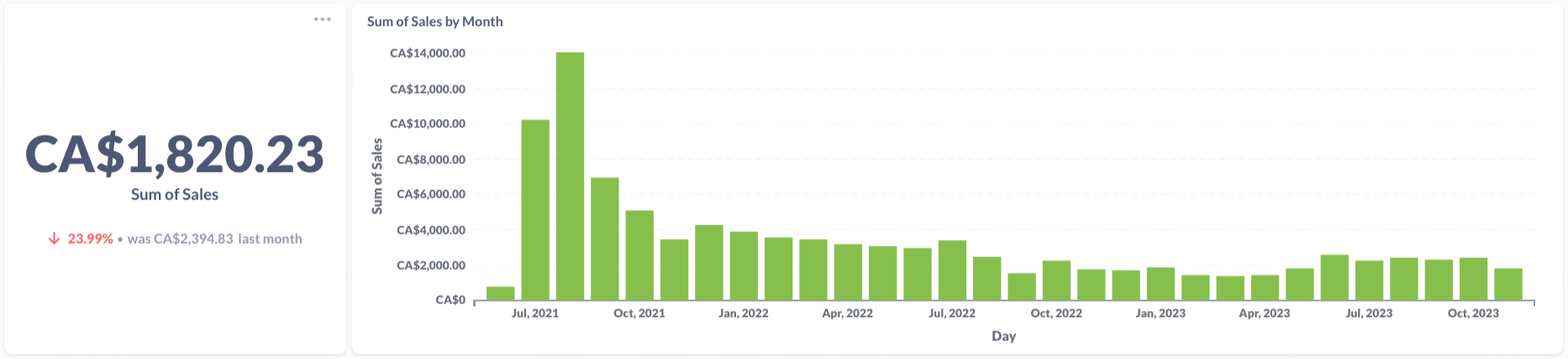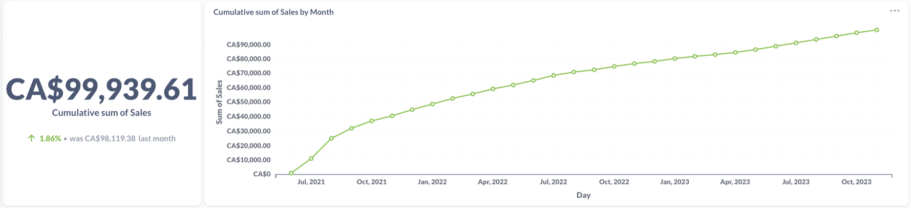 The cumulative sum of tracked sales for this item. The static sum is shown on the left and the monthly sum is shown on right.