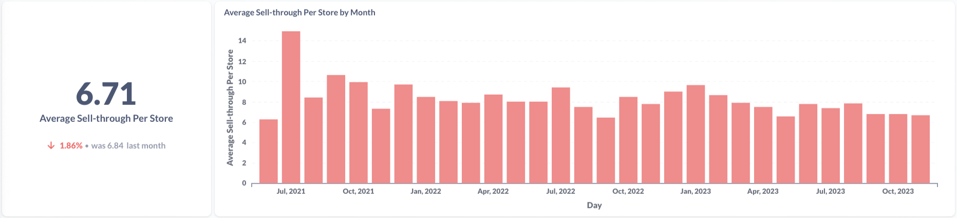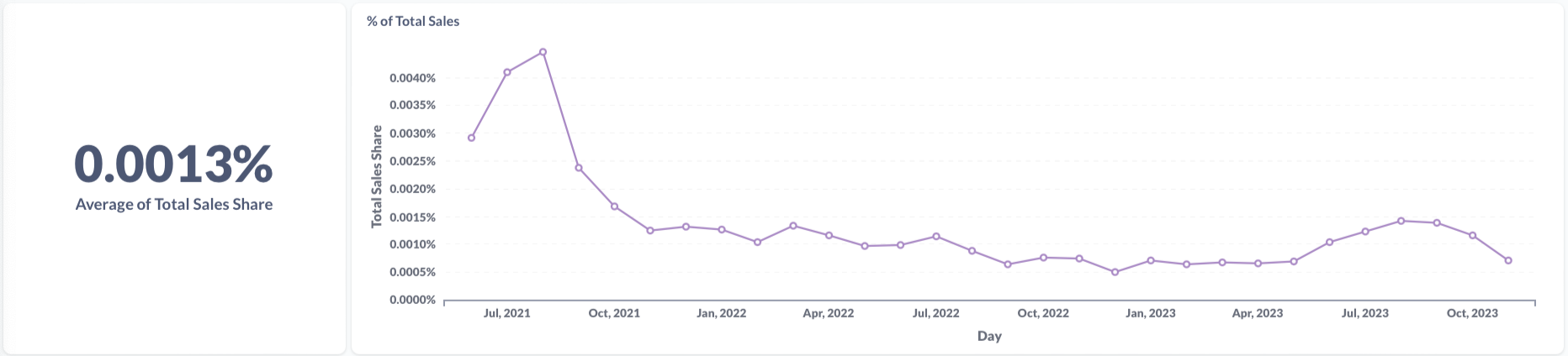 The sum of sales for this item as a percentage of all sales we track. The static average is shown on the left and the monthly average is shown on right.