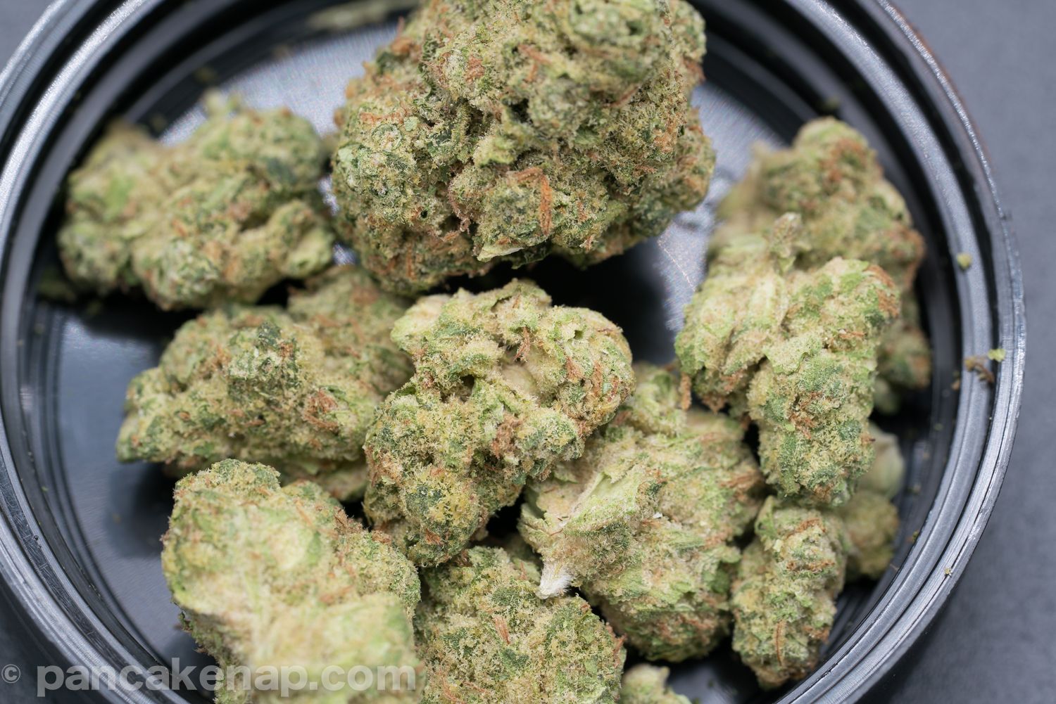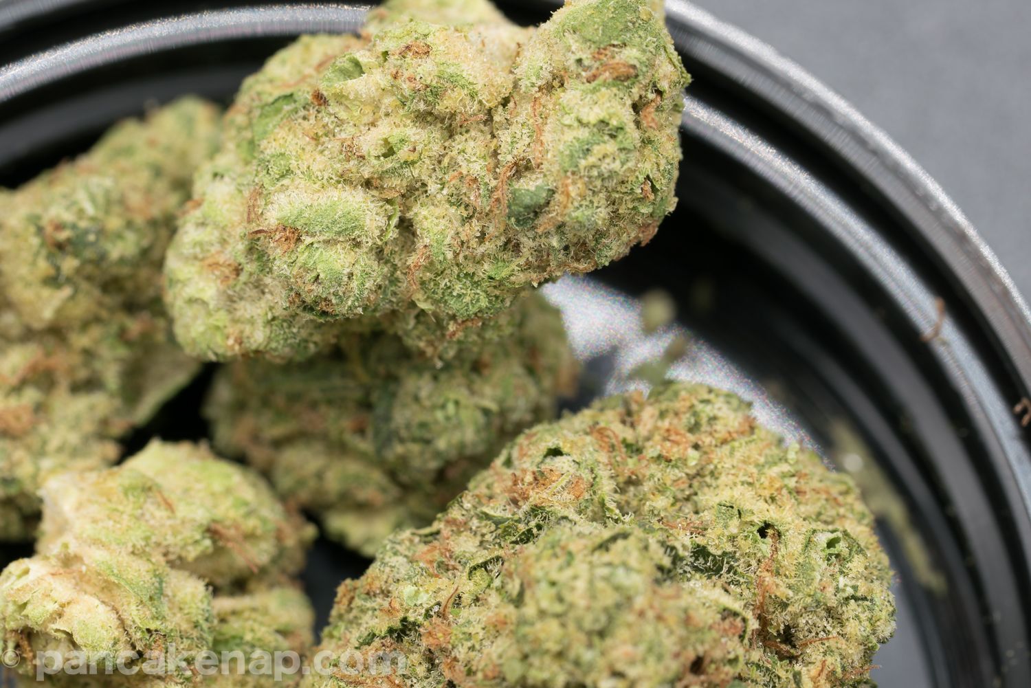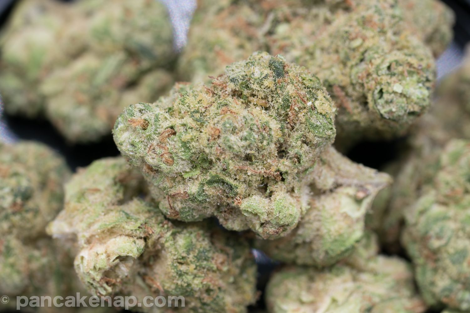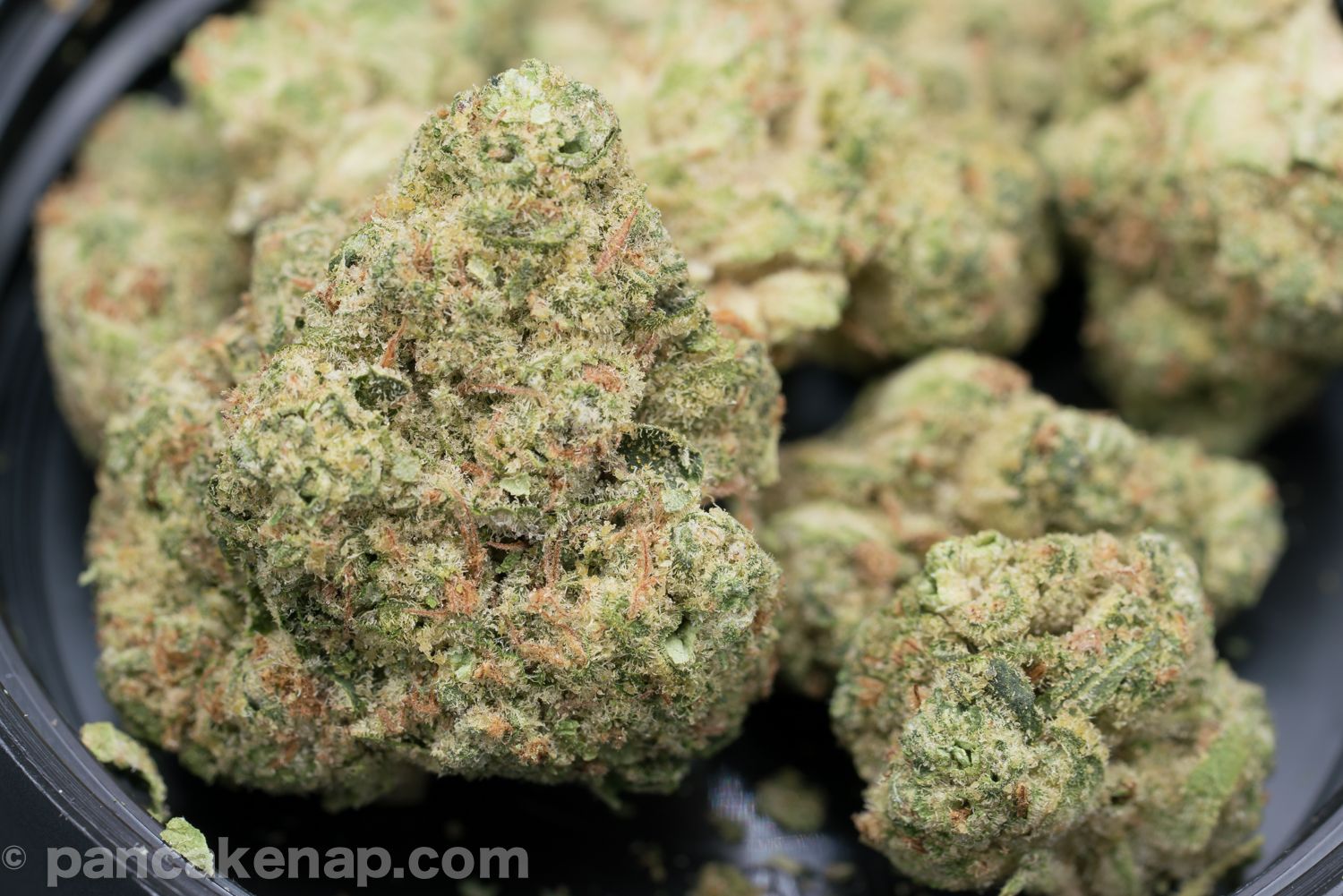 Good visuals to the naked eye. Size is alright and the buds are shapely regardless. Up close the trichomes look less like a matrix of stalks with a bulb, and more as a congealed mix of bulbs.