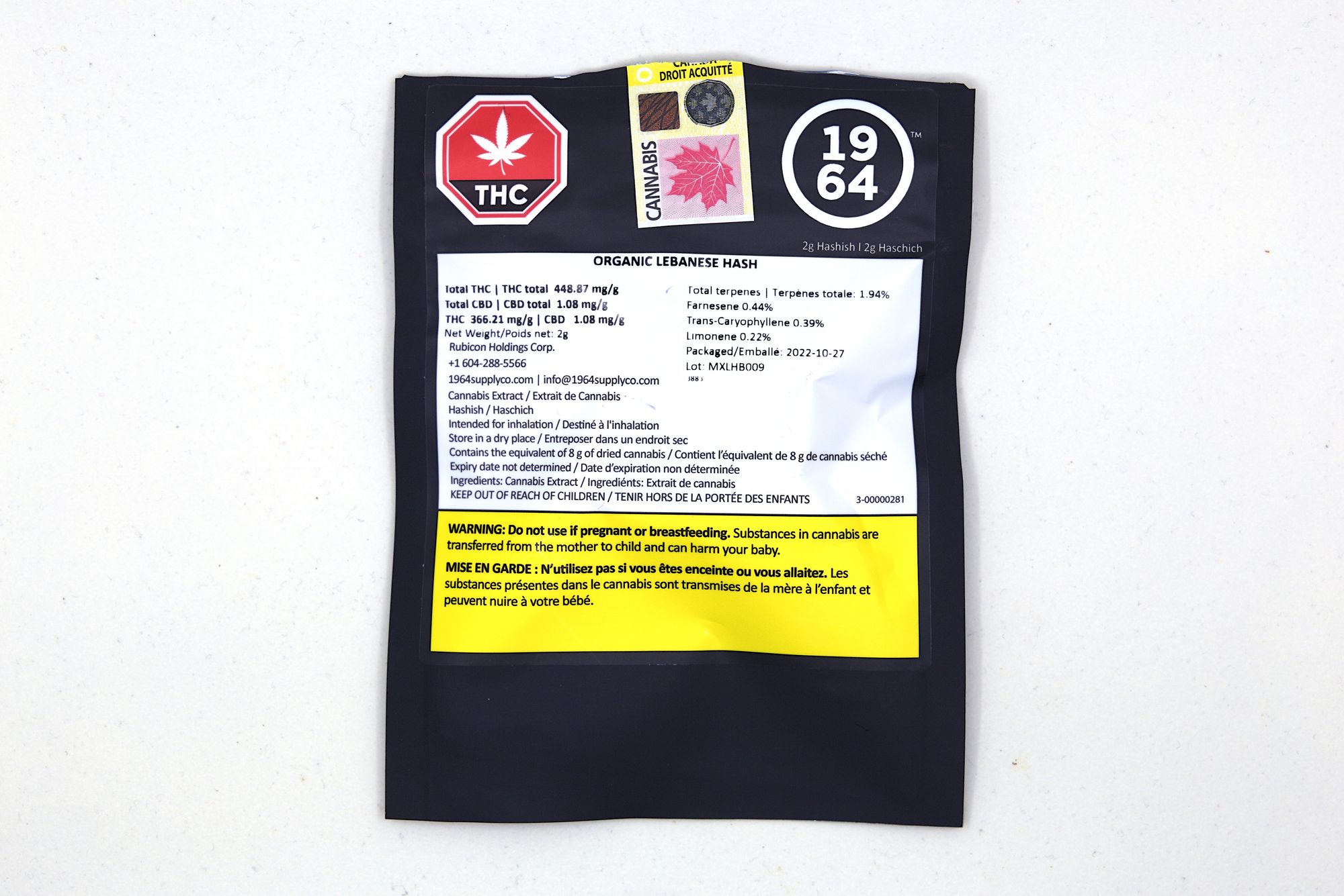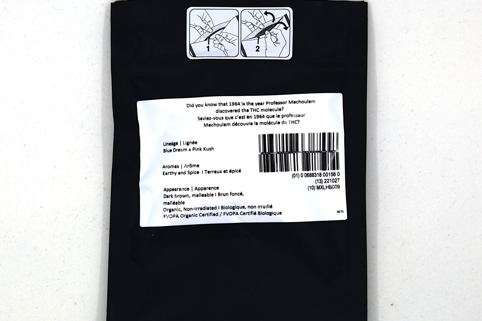 This is a brand under Rubicon Holdings. Pancakenap reviewed a hash offering from another one of the Rubicon Holdings’ brands, Simply Bare Organics, and it wasn’t the greatest so the bar is really low here. The brand name is a reference to the year that THC was first chemically isolated and its structure elucidated (if biochemistry is your thing, then see the famous paper Gaoni, Y., & Mechoulam, R. (1964). Isolation, structure, and partial synthesis of an active constituent of hashish. Journal of the American chemical society, 86(8), 1646-1647 for all the details). They emphasise that they grow in soil under natural sunlight using organic practices. The growing region is BC’s Fraser Valley.