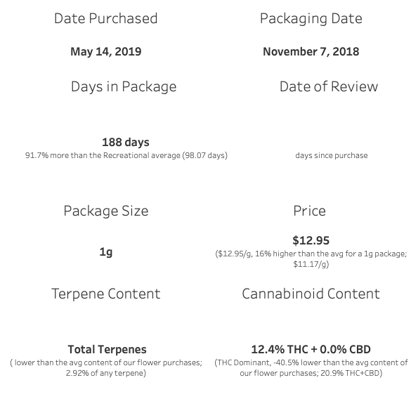 The nail in the coffin for stuff like this, in my opinion, actually comes from Aphria. I just reviewed their Sour Kush (or Sense), similar offering and the difference in quality is overt– Aphria’s price is also 26% cheaper for the same package size. It’s under $10 per gram, that’s what’s Up.
