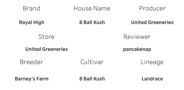 So, the 8 Ball Kush is a Barney’s Farm variety. The breeder says this as a regional variety, stabilized by inbreeding selections from the mountains bordering Afghanistan and Pakistan. I found it forgettable.