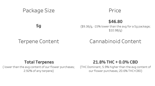 UG charges $9.38 per gram across all their offerings. In my experience, quality at this price point is a crapshoot, I’ve seen worse and better. I probably don’t have anything usable for you, other than calling it a midrange offering. I wasn’t disappointed, but I expect United Greeneries is capable of better.