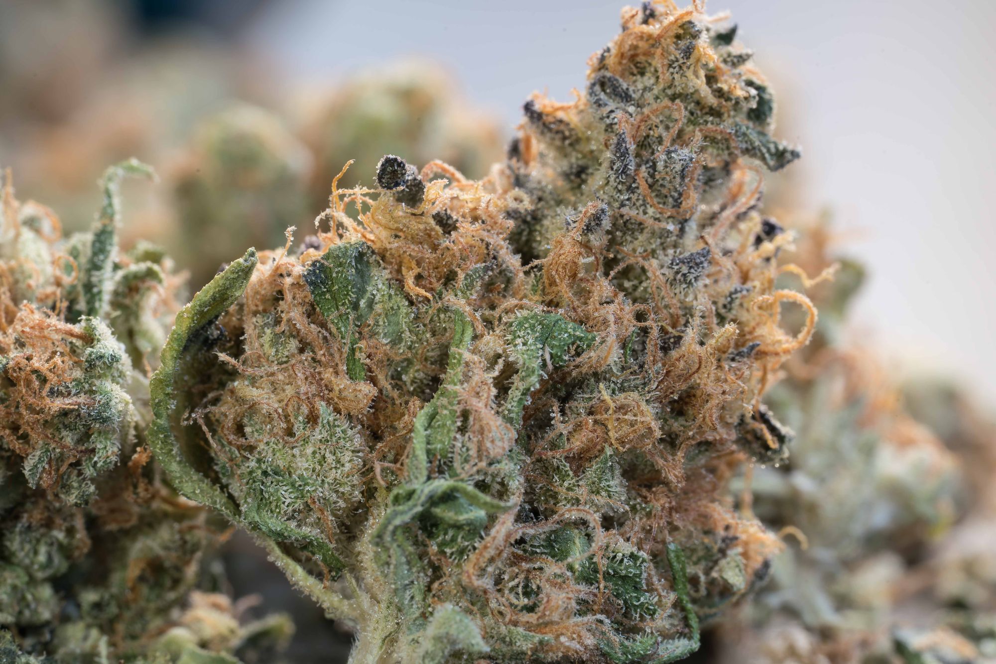 For the container I received, structure was the worst part of the Banana Split, some of the buds were crumb size. Some deeper purple hues can be seen if you look closer. Pistils are prominent on this variety, the buds are covered in red hair and appear more red than green.