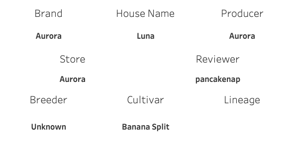 Judging from nose alone, Aurora’s Banana Split could have some OG in it, although it’s largely muted in the pine and fuel tones, so I feel that Girl Scout Cookie is more likely than the OG. The fiercer edges of an OG profile are traded for some brightly gingered sweets, slightly crescendoing through some softer earth tones. More like banana bread, less like a banana split.