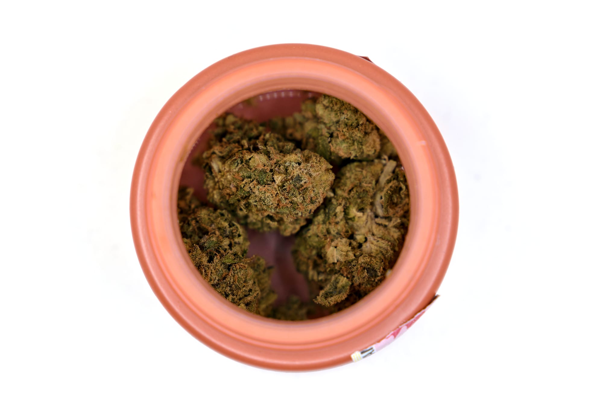 Dense with nice humidity, even throughout and with good return upon compression. Of note, squeezing revealed that these buds are not sticky. In a grinder gives some resistance, but not what I’d call chewy. Grounds are fluffy with good cohesion, really no complaints here. Even the lack of stickiness isn’t a reliable measure of quality, more just user preference.