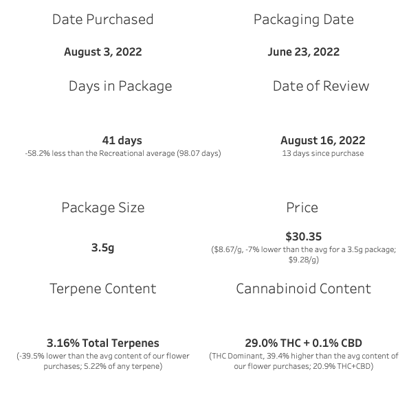 Price is about $8 per gram, or $31 for the eighth. I’d call the price point about average.