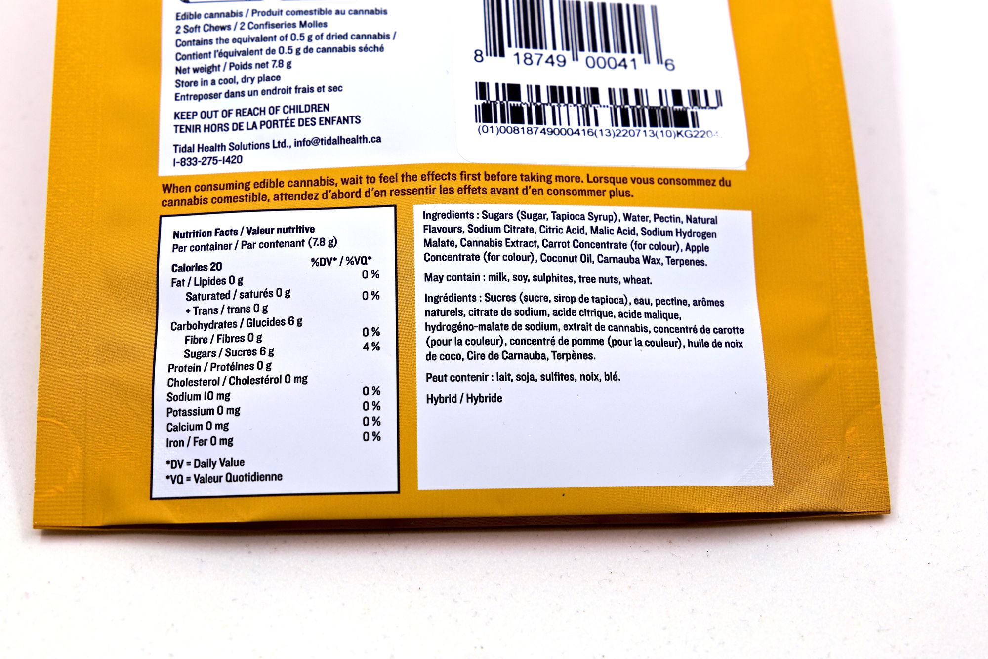 As for the info, I do not have access to a Chompytician nor a Yummyologist or anyone like that, so can’t really give too much of a commentary on the ingredients. They use pectin for a gelling agent so good for leaf eating hippies. The final ingredient is just “terpenes” so, no idea which nor how much, but as I said, last entry so a trivial amount if you care about that. It says “Hybrid” on the label for some reason, this is meaningless so ignore it.