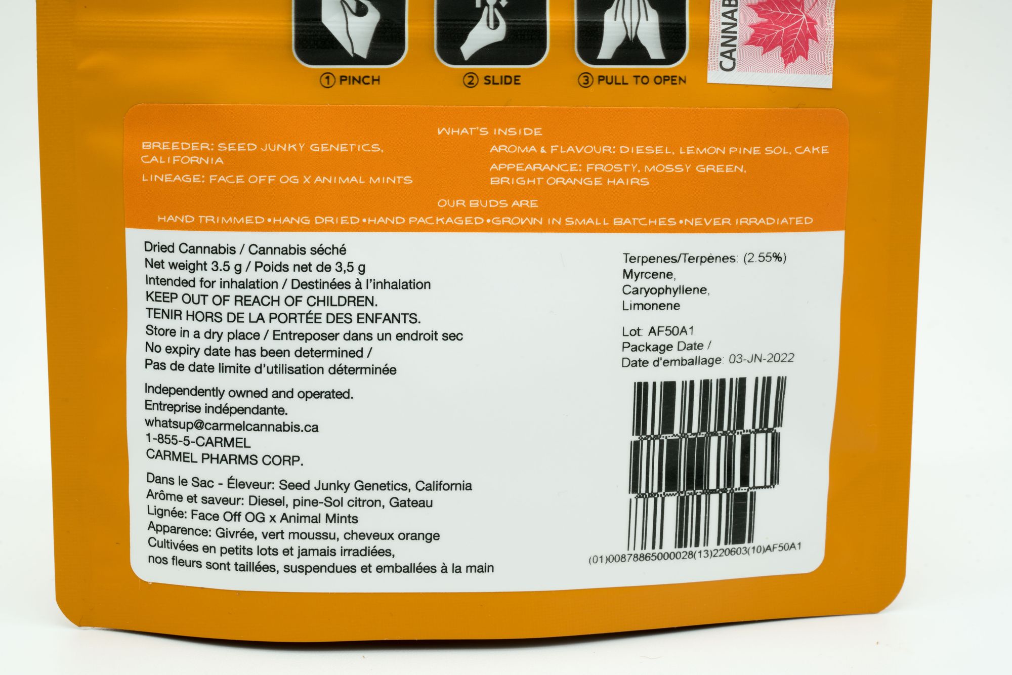 Lineage is listed on the back of the package, so is the breeder (Archive’s Face Off x Seed Junky’s Animal Mints). Breeder is Seed Junky.