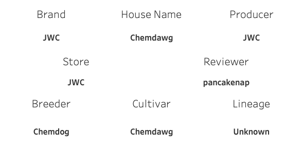 I requested terpene content from JWC, they provided they data (thanks!). This Chemdawg is Nerolidol dominant with a Beta-Caryophylene secondary terpene. It sums around 1% and change, not the 2.5% I was expecting but the flavour was so strong, I either don’t mind or don’t believe it only has 1% terpene content.