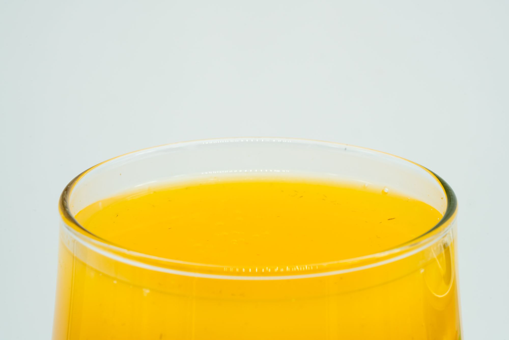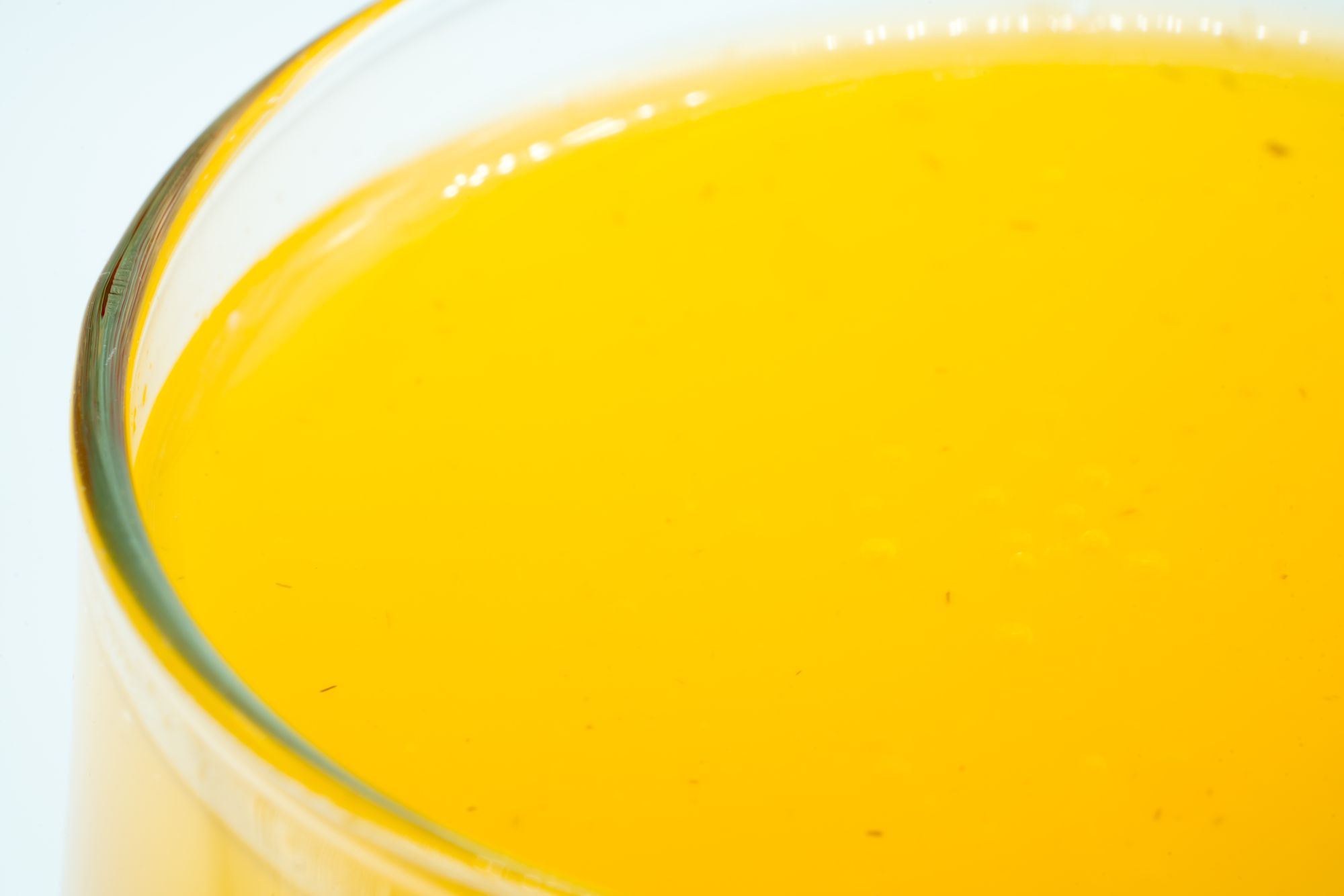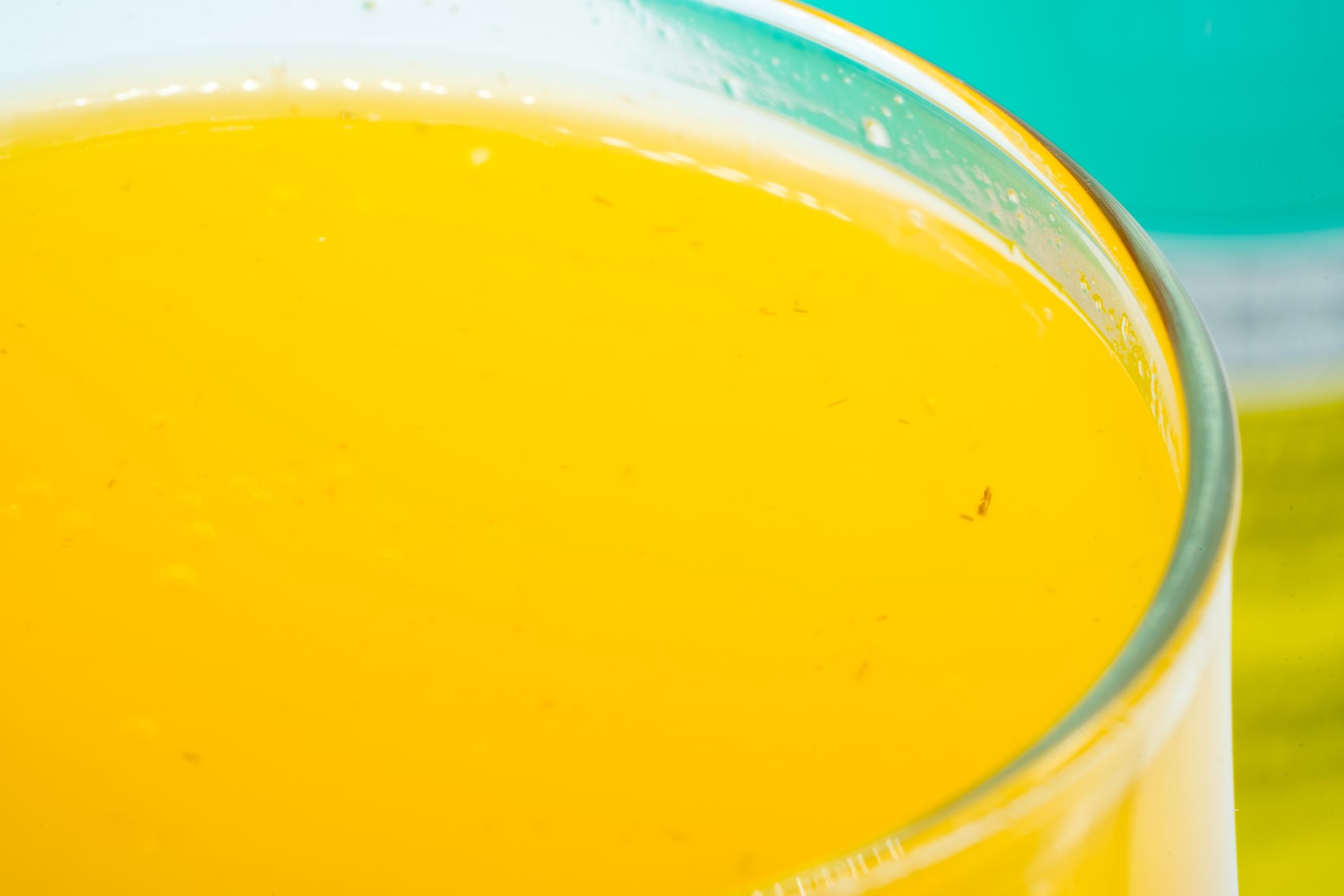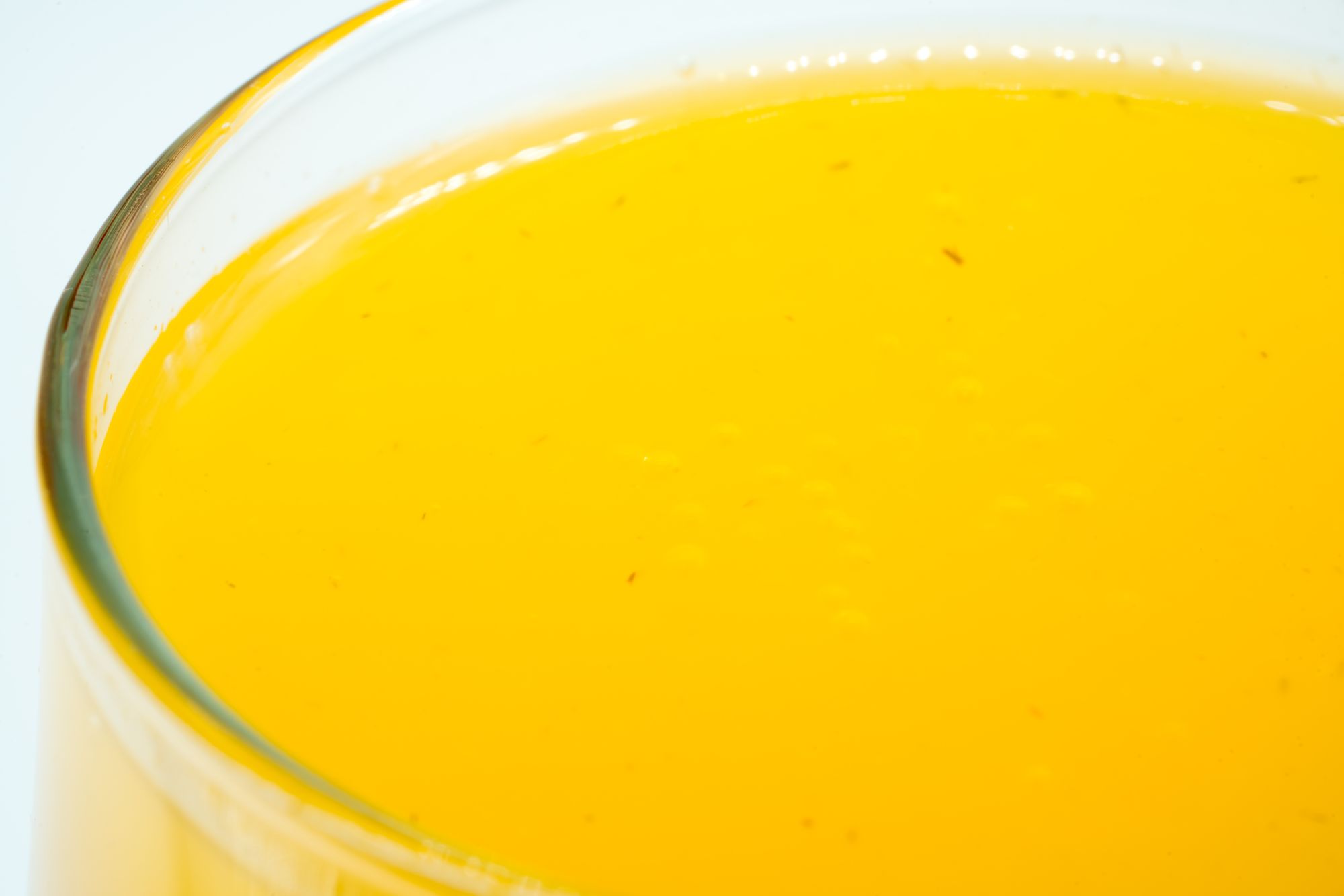 Opaque orange liquid. Very vibrant colour. After you pour it theres carbonation and some brown fibrous pulp floating to the surface. The liquid appears more syrupy, more viscous, less watery.