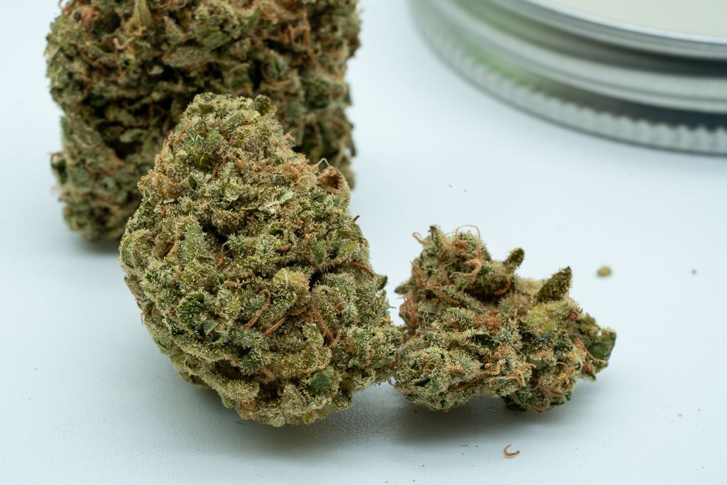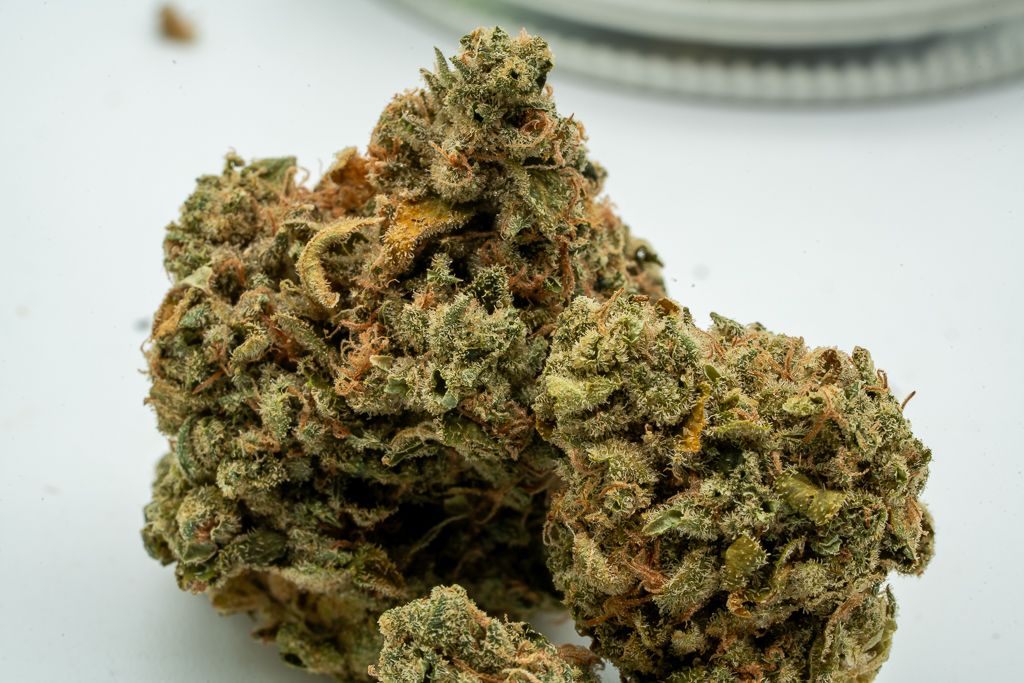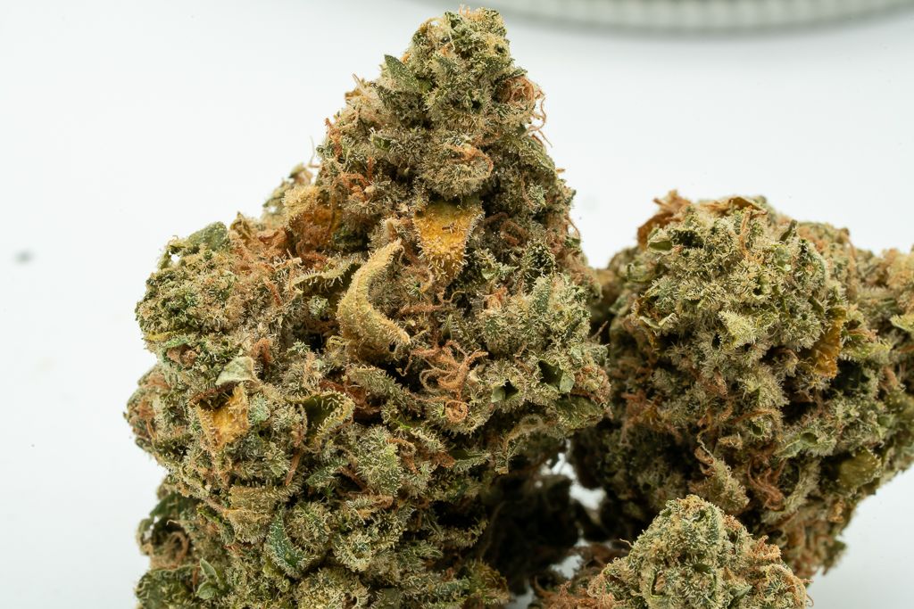 Upon opening it, I felt a bit disappointed due to the unsaturated color and the presence of trim leaves left on the larger buds. The buds looked reasonably good, but the yellowed trim leaves were a noticeable flaw. Despite this, the overall visual appeal is decent. There are three buds, fairly well trimmed, with good surface detail. It meets expectations, and considering the price, one should expect the best.