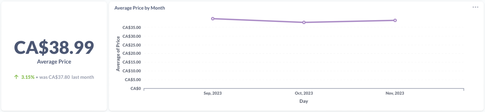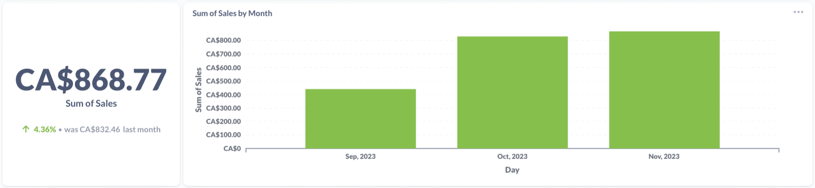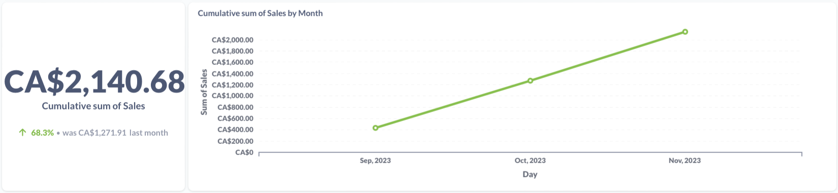 The cumulative sum of tracked sales for this item. The static sum is shown on the left and the monthly sum is shown on right.