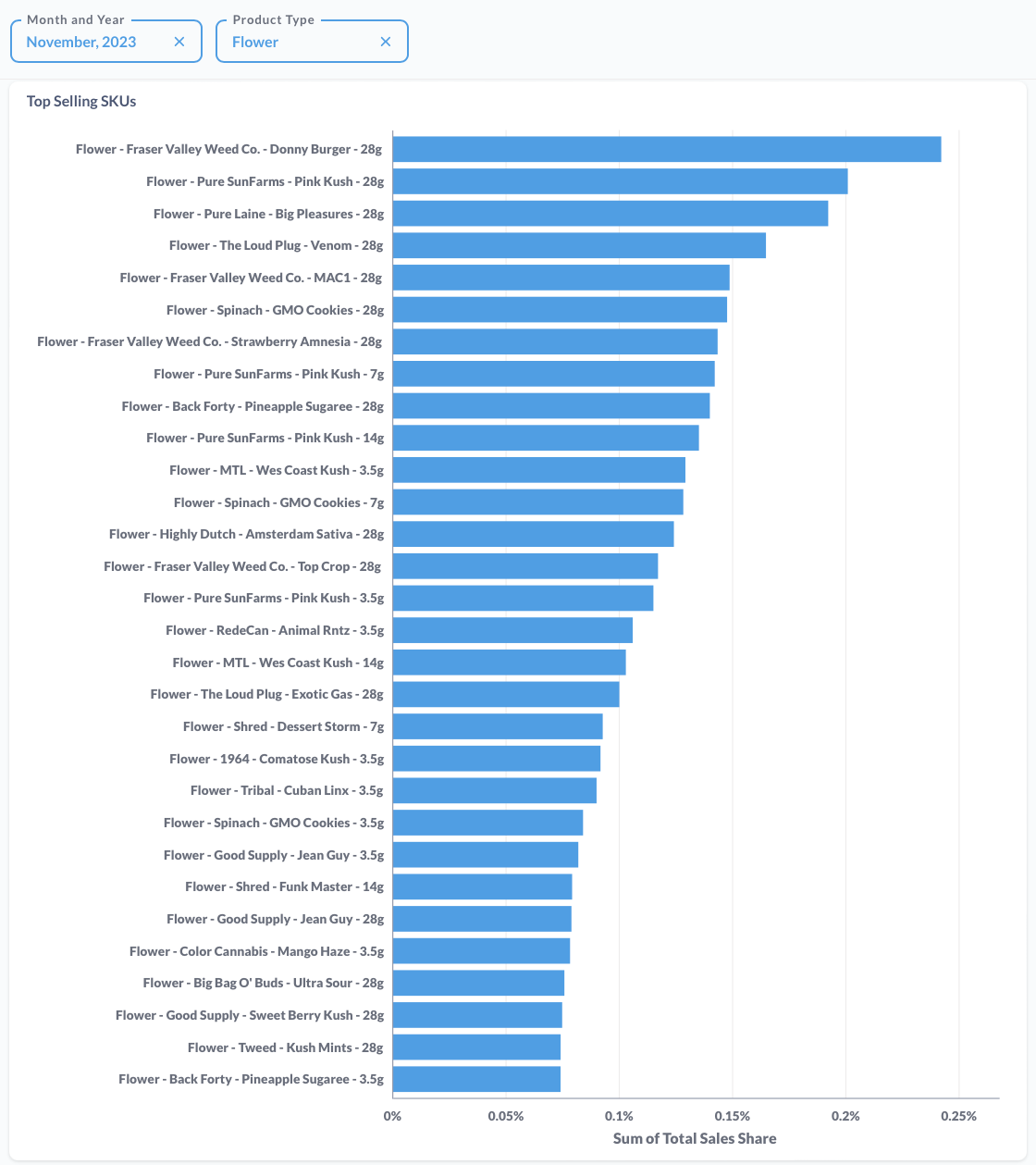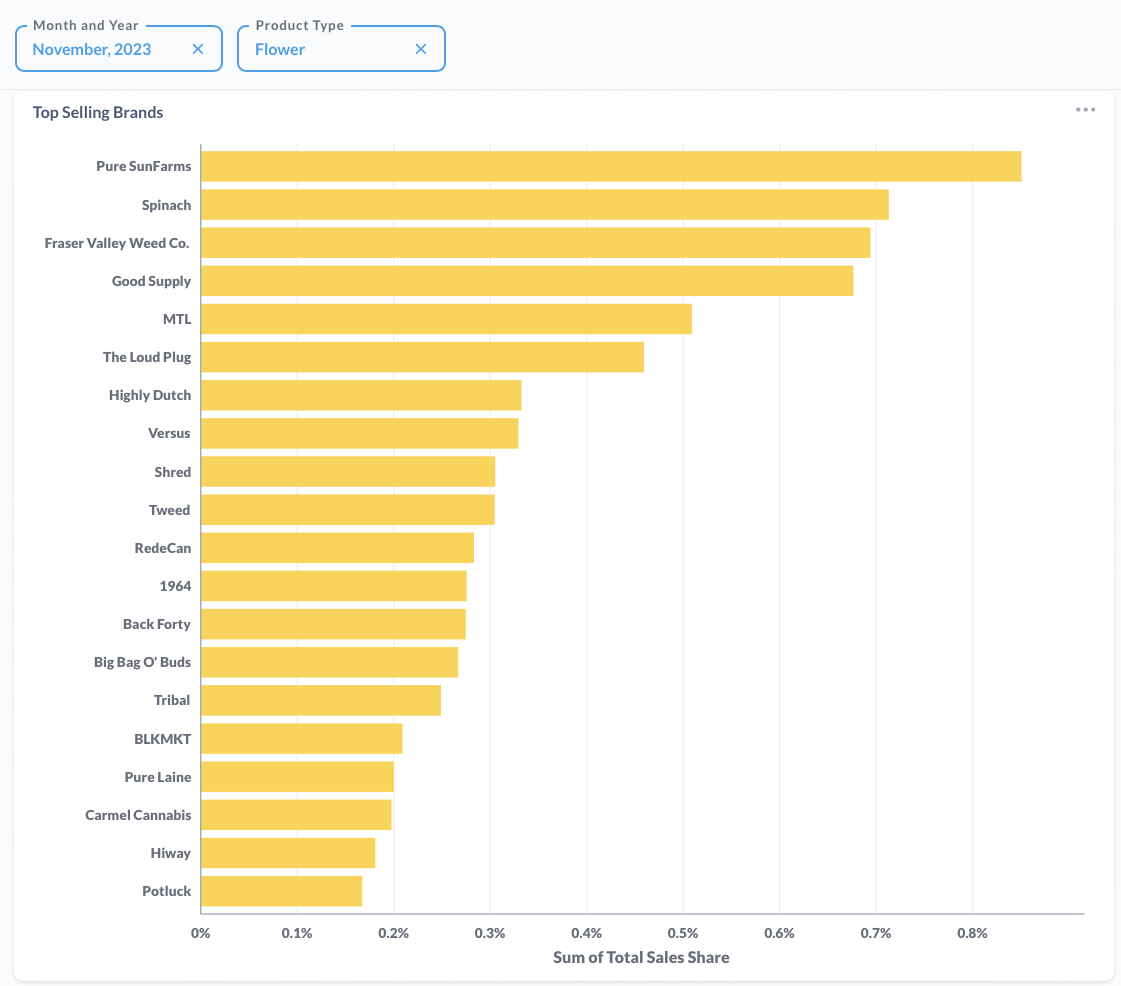 Dank Drops didn't place on our estimate of flower brand market share in November 2023.