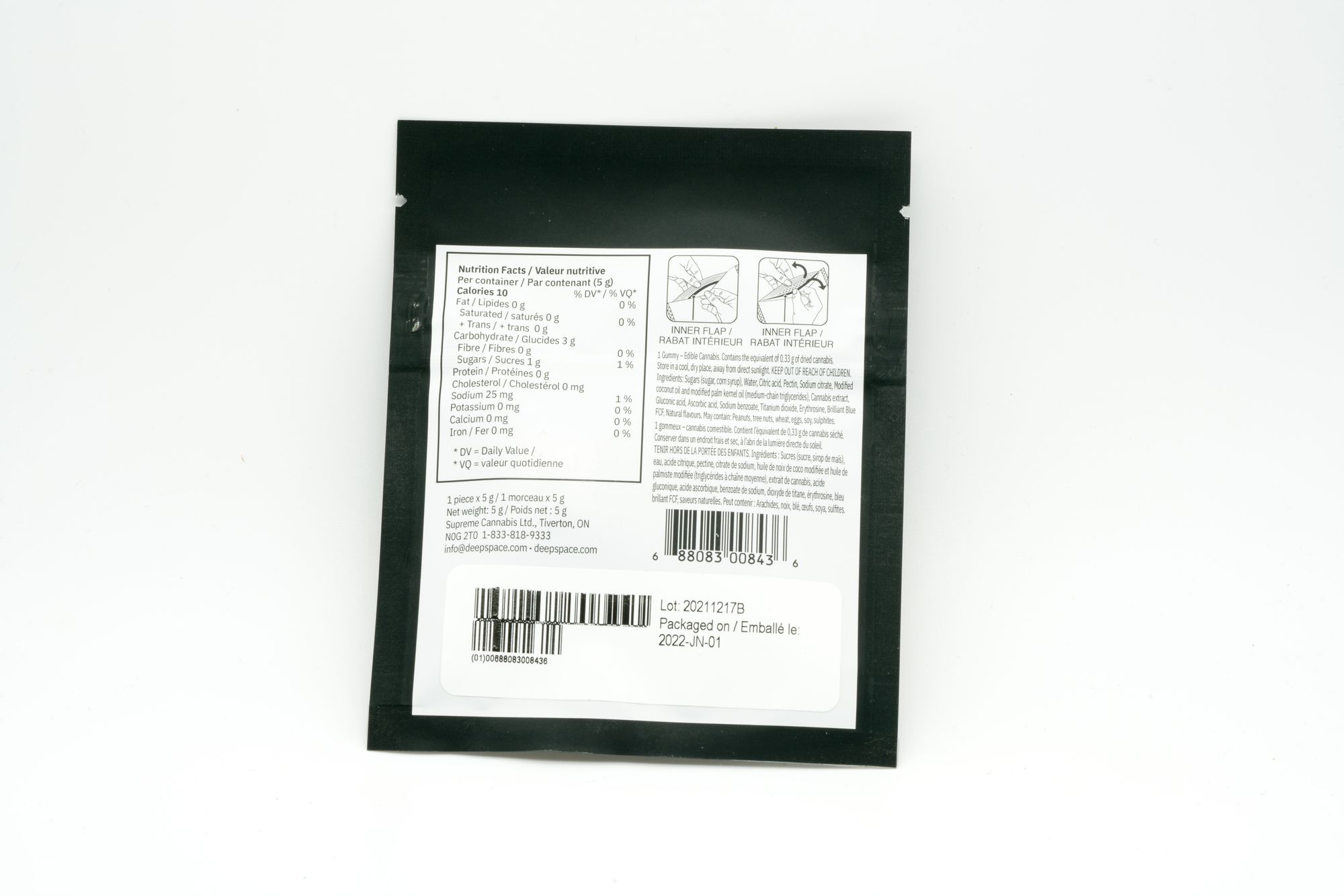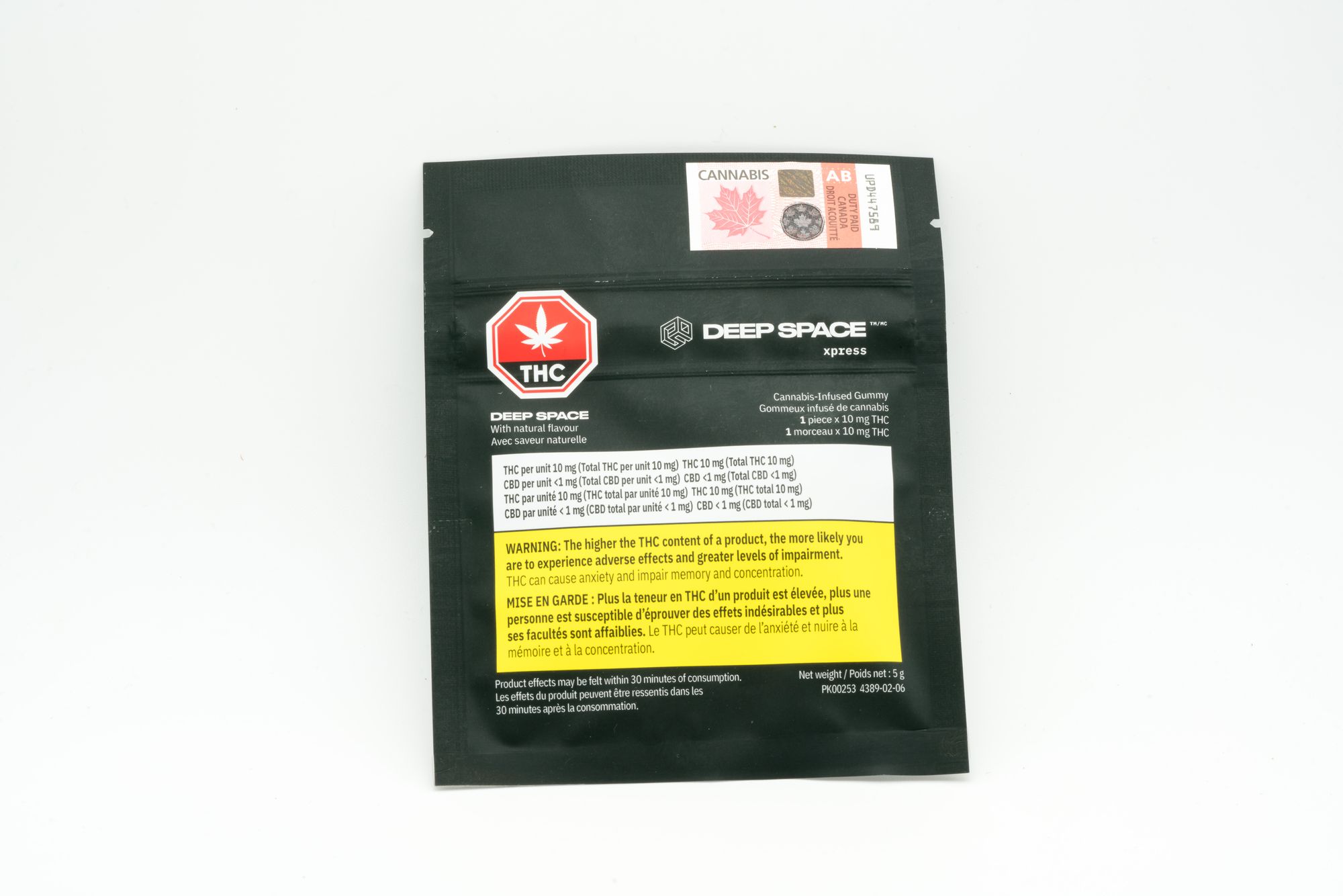 Hey pancakenap here, hope I got this product name right: Deep Space Xpress. Is that it? Or is it Cannabis-Infused Gummy by Deep Space Xpress? I don’t know. Producer in the fine print is Supreme Cannabis, so that’s the party responsible. This is a Canopy-owned brand I believe.