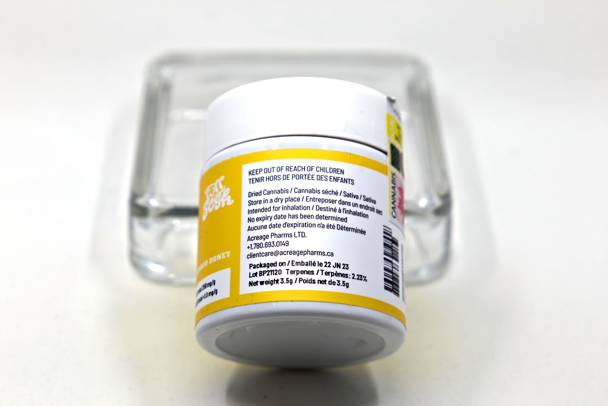 Full Sesh brands themselves as craft, but of note is they don’t have a craft designation in Ontario, so take from that what you will. They have some copy on their website that is as hilarious to read and is as uninformative as the back of a bag of Doritos (my favourite claim is that this cannabis is “. . .packed with a world-renowned flavour that everyone enjoys.” which I am pretty sure is a phrase also used on the back of a bag of Doritos). The brand is owned by Acreage Pharms, who do not have a stellar reputation for quality.