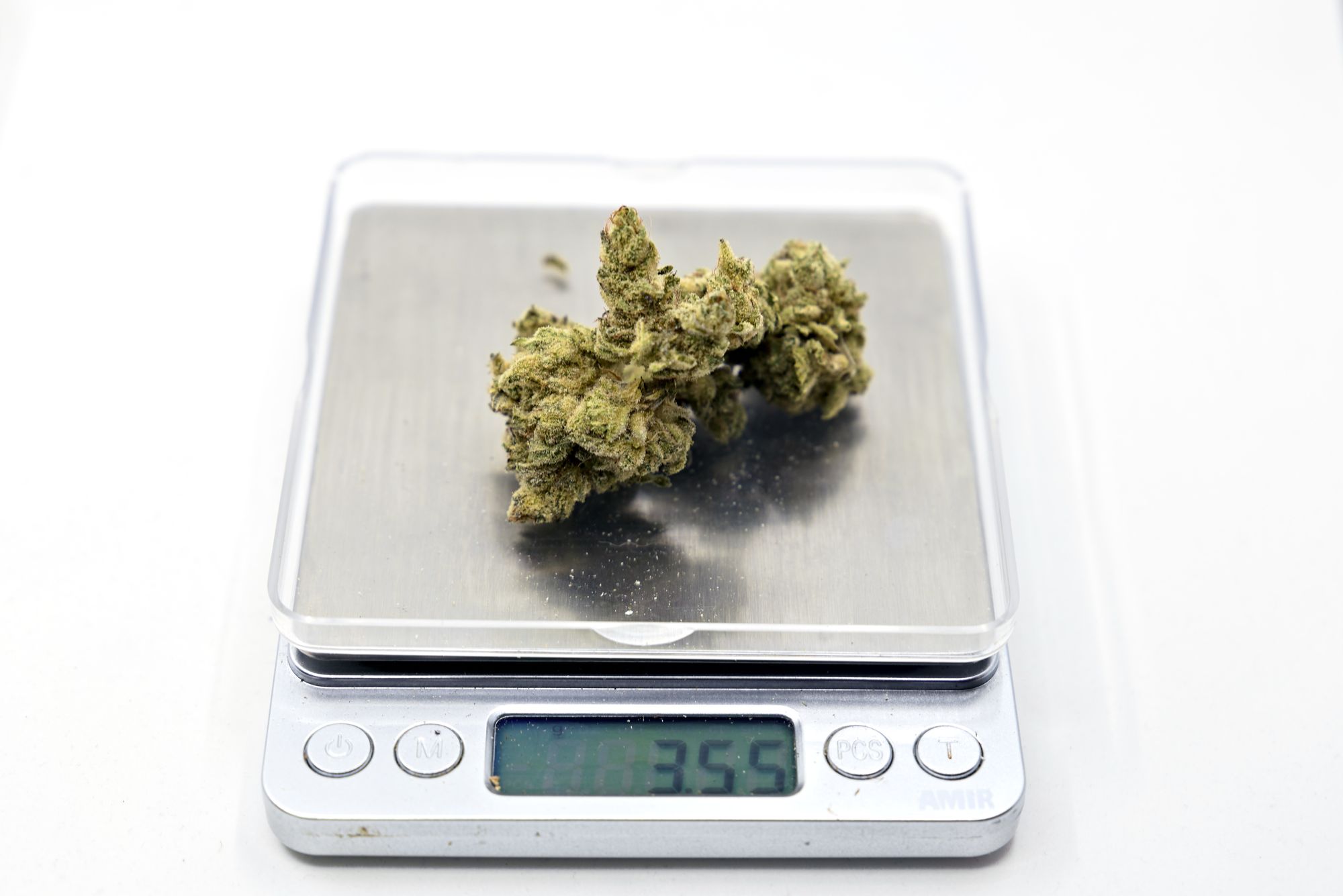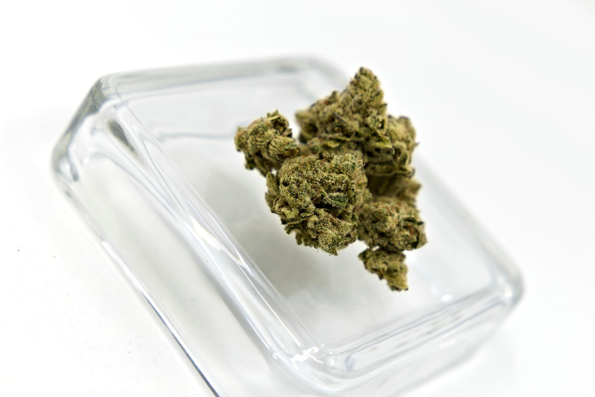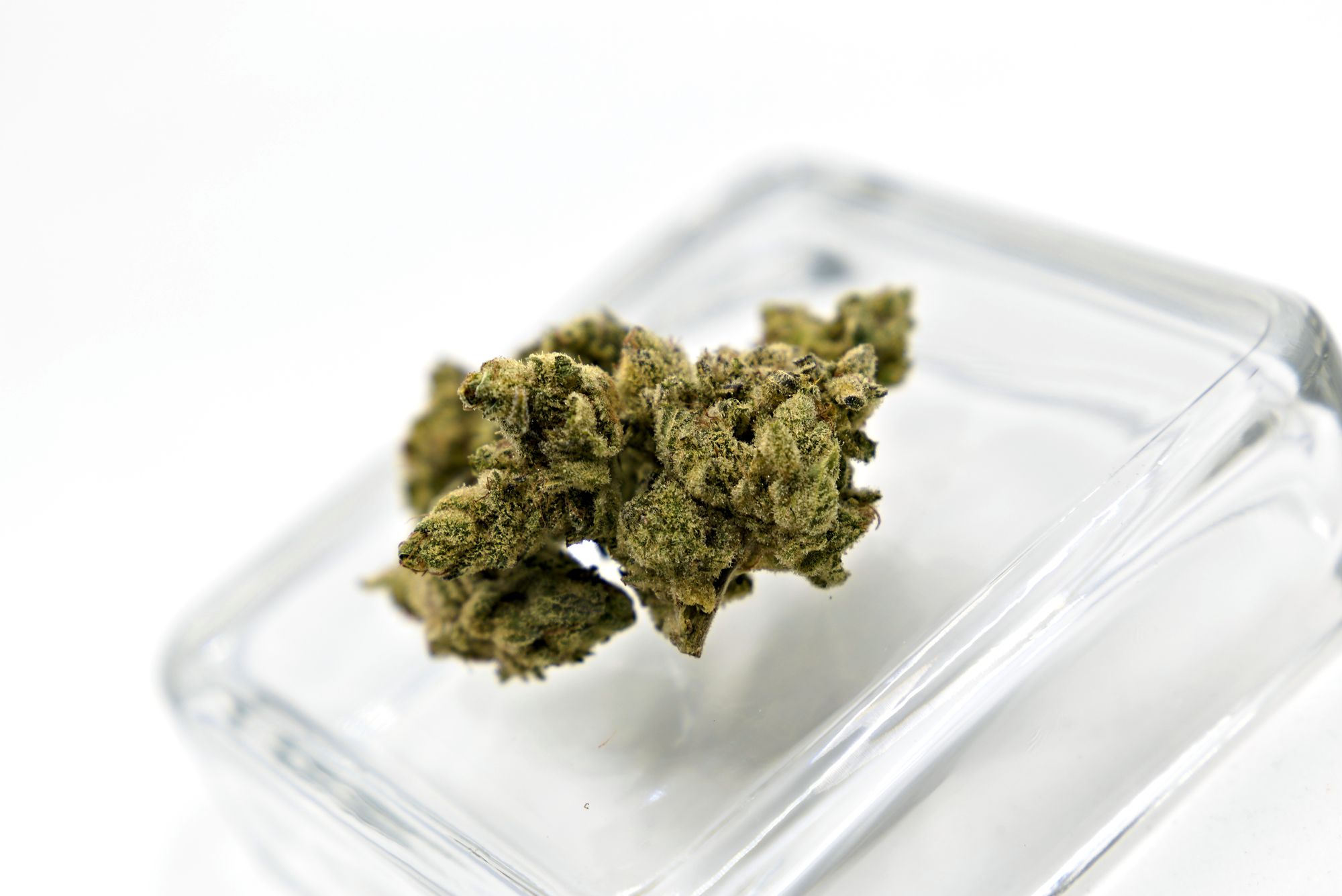 Buds have khaki colouring with some darker patches. Shape is stout, wide at the base and quickly coming to a point. Trim is clearly done by hand and is mildly sloppy. Trichome coverage is good, quite frosty looking. The container had some decent sized buds and a few smaller pieces to round out the weight. Grinds are fluffy and uniform.