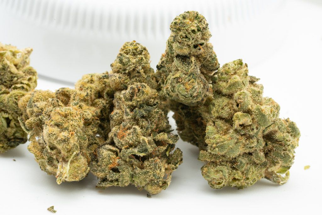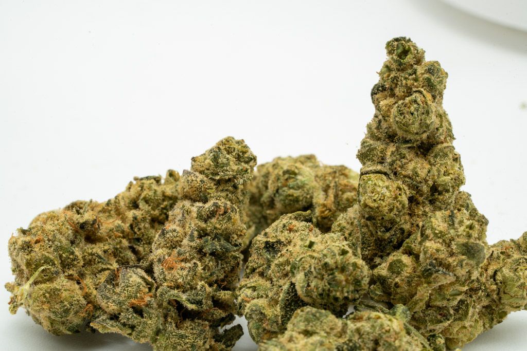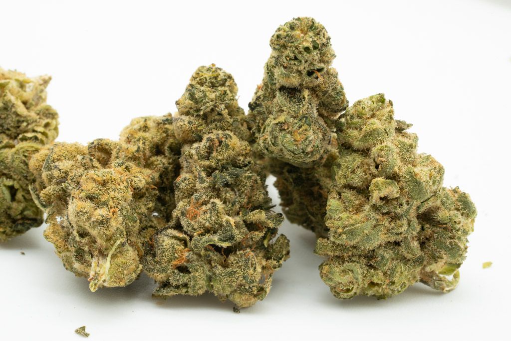 The buds display a green colour with minimal stigma. Their development is impressive, with bracts appearing swollen and knuckled. Trim is good, and trichome coverage is notable.