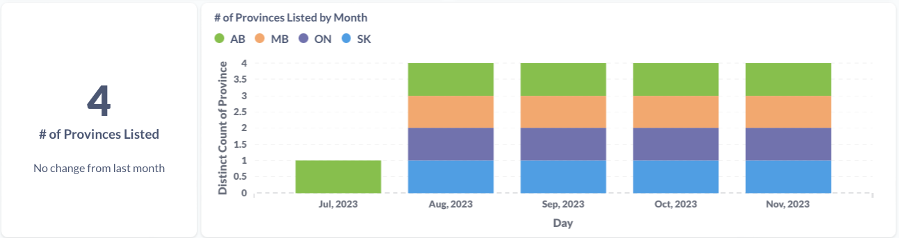 The count of provinces we can find this product listed in.
