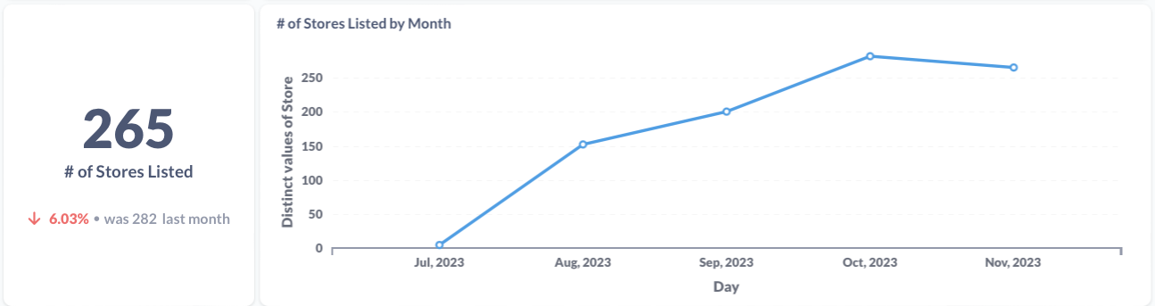 The count of stores we can find this item listed at.