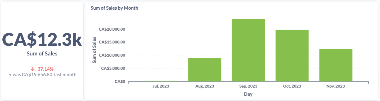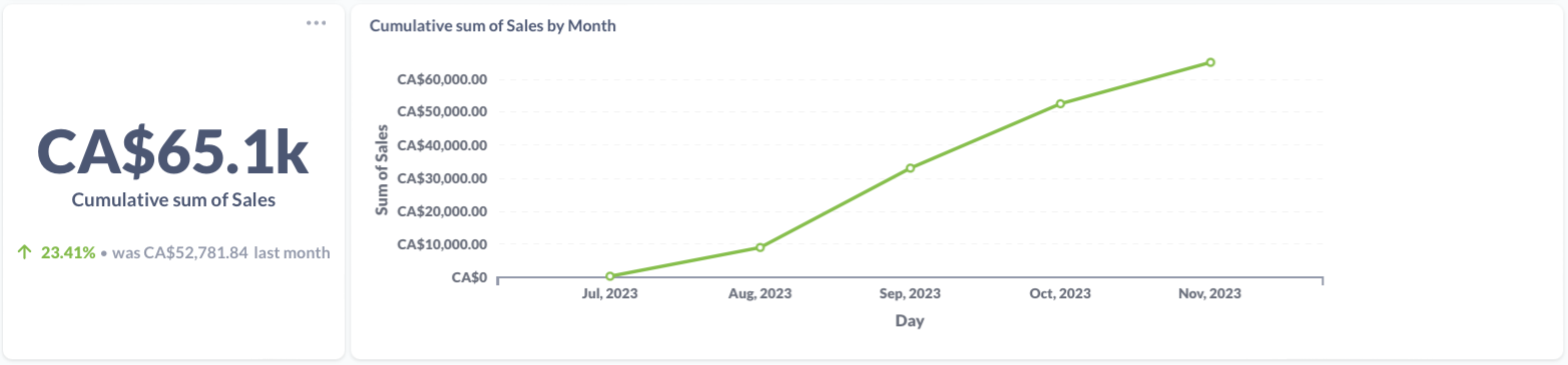 The cumulative sum of tracked sales for this item. The static sum is shown on the left and the monthly sum is shown on right.