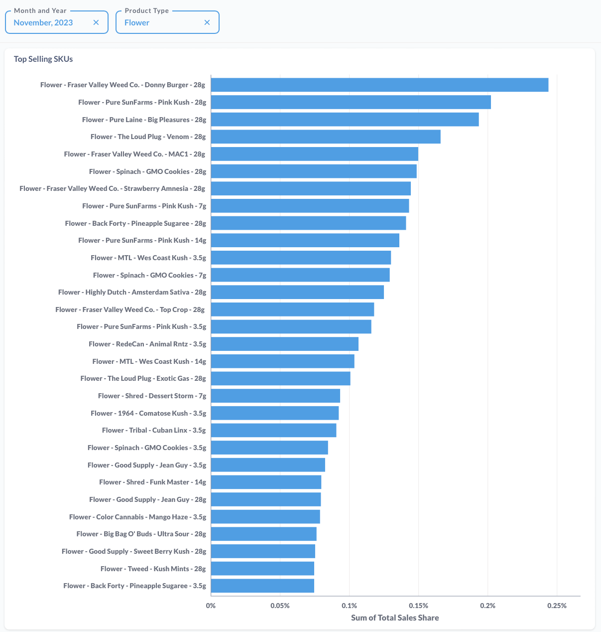 Serial Jealousy didn't rank on CannStandard's flower top 30 sellers list for November 2023.