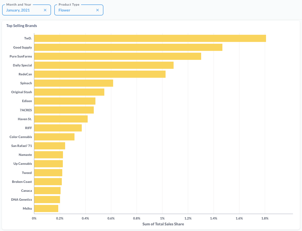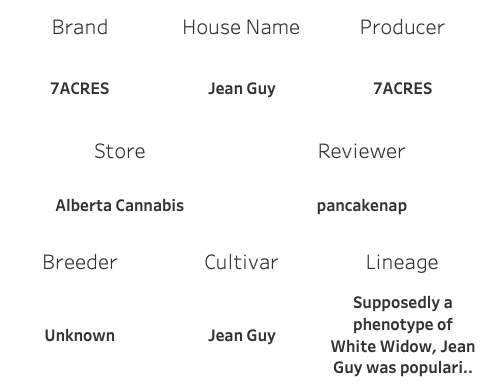 This Guy’s visual appeal is well above average. Structure is great, I got one apical bud with two nicely trimmed lower buds. The manicure is meticulous, which I probably prefer, but I also don’t mind seeing a leafier trim. The buds have a density similar to the of the 7ACRES varieties I’ve seen, quite compact with little pliability. Grinds to a functional end product, not too dry, doesn’t stick together because the bud is too wet. Someone looked over every crevice of this Jean Guy with a sharp instrument, it’s observable. There is a level of quality assurance here that I don’t see in other brands of recreational cannabis. Over my past 2 purchases, four of ten varieties had good visual appeal, three of those were from 7ACRES. If 60% of my recent purchase history was regrettable, the consistency in the product really matters. Combustion was fairly clean, not outstanding, but still enjoyable, albeit with a muted profile. More than passable, not a defining experience. This is where I was going to jaw on and on about the differences in value between Aphria’s Jean Guy and 7ACRES’ Jean Guy. Aphria’s was $10/gram and was really poor quality. This 7ACRES variety was 55% more expensive ($16/gram) and was miles above the Aphria product in terms of quality. There is no contest between the two. I’d rather spend a bit more on a sure thing I use sparingly, then gamble on buying a container of shake for $10/gram. Next up, we’ll review the 7ACRES Wappa, which seems to maintain the 7ACRES quality we saw here, for less price. Afterwards, we’ll move to a variety that has similar visual appeal, priced under $10 per gram, and we’ll see how we feel about it in the wake of the 7ACRES products. pancakenap has reviewed 5 offerings of 7ACRES product totalling to $150.97. Of those reviews, 2 were for a 1g package of flower which averages to $14.00 per gram, 25.7% higher than the average for a 1g package across all purchases ($11.14 per gram). pancakenap has made 224 purchases at Alberta Cannabis totalling to $4,156.56. Of those purchases, 117 were for a 1g package of flower which averages to $11.82 per gram, 6.1% higher than the average for a 1g package across all purchases ($11.14 per gram). On average, a flower product purchased from Alberta Cannabis has spent 87.6 days in the package before purchase, or -10.5% lower than the average for a purchase from any vendor (97.9 days). from CannStandard Next we bring in several market measures for this item using data from CannStandard. This data was obtained from public listings for legal cannabis products in Canada. I've provided the data as they were in the last complete month they were available (October 2023). Contact us for more information about our market intel. The first date we can find the product listed and the number of days since then. The count of provinces we can find this product listed in. The average price of this item at the stores we can find it listed in. The count of stores we can find this item listed at. The sum of the observed change in inventory multiplied by the price of this item across all stores. The sum change in inventory for this item divided by the number of stores that list it. The sum of observed sales for this item divided by the number of stores that list it. The sum of sales for this item as a percentage of all sales we track. The static average is shown on the left and the monthly average is shown on right. The cumulative sum of tracked sales for this item. The static sum is shown on the left and the monthly sum is shown on right. This product did not rank on CannStandard's flower top 30 sellers list for January 2021, the month where the highest peak of sales was observed. 7ACRES placed 9th on our estimate of the top 20 brands with respect to flower brand market share in January 2021. Thank you for taking the time to read through the market data. If you are part of the industry, whether you have a store or a product in the market, and you'd like to receive this information via email, please reach out to us at info@cannstandard.ca. We are also here to assist with any inquiries you may have regarding the data or our reporting. Your feedback and questions are welcome.