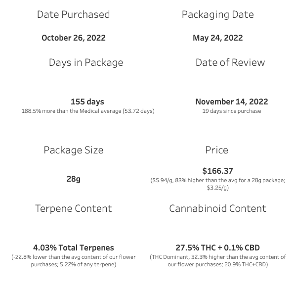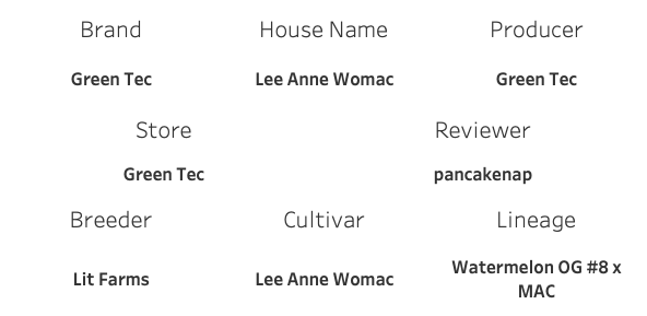 When I look back at the review stats for GreenTec’s Lee Anne Womac I think, how is this not my favourite for the year? By the numbers it’s really good, it makes a lot of measurable stuff (THC, Terpenes) for not a lot of money. The flavour profile is fucking fabulous, to be precise. Qualitatively it was upper tier; triple A at least. Trendy breeder. Popular parents. On paper, it’s a killer offering.