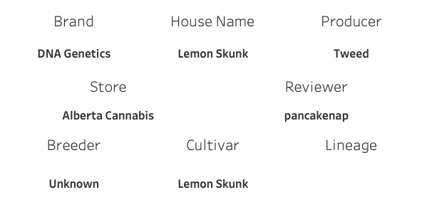 Lemon Skunk is a DNA Genetics variety, created from two skunk phenotypes. I expect we got 15% of its overall character with Tweed’s version, I suppose one would have to grow it themselves to see the full 100%.