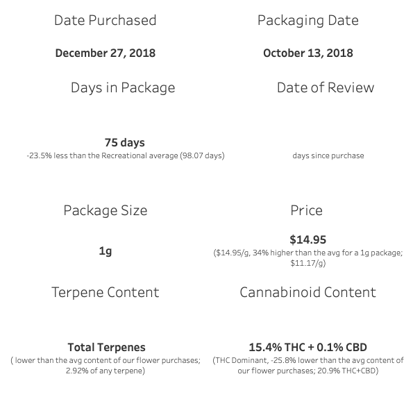 This is the second time we’ve had cannabis from Tweed that was outstandingly dissatisfying. Although a bit better than Highlands, seeing another offering from Tweed of this poor caliber is unsettling.
