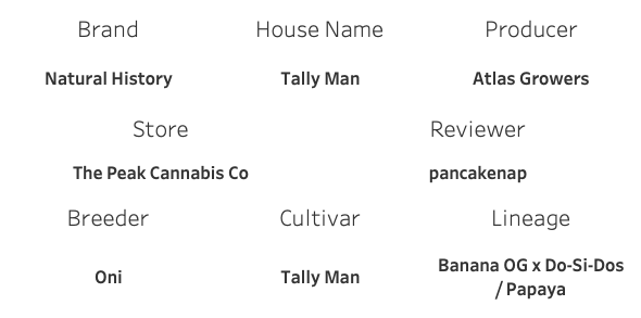 Breeder on this is Oni and they actually call this Tally Mon, with an ‘o’. The lineage is Banana OG x Dosidos crossed to Oni’s Papaya.