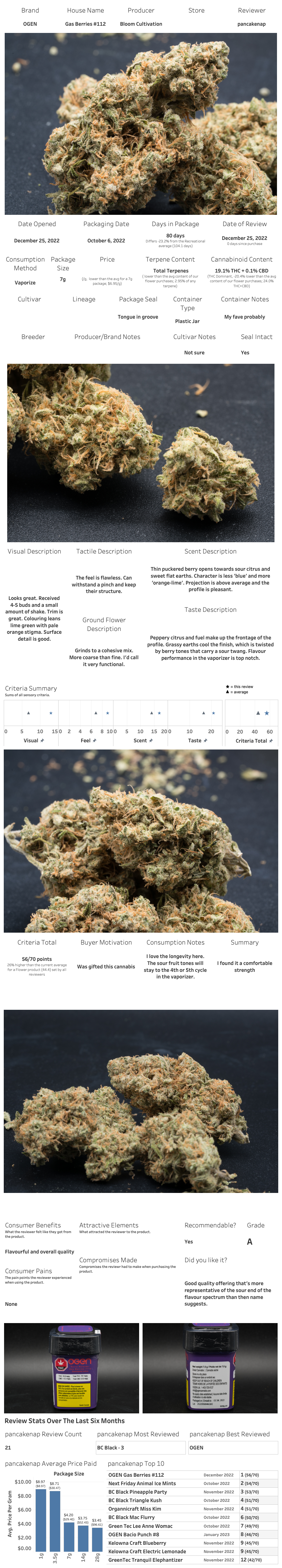 I ran this through our regular criteria and it did very well. Top notch with respect to what I was reviewing at the time. I didn’t actually purchase the cannabis so the form below lacks pricing and vendor information.