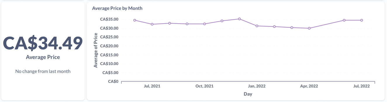 Next we bring in several market measures for this item using data from CannStandard. This data was obtained from public listings for legal cannabis products in Canada. I've provided the data as they were in the last complete month they were available (October 2023).