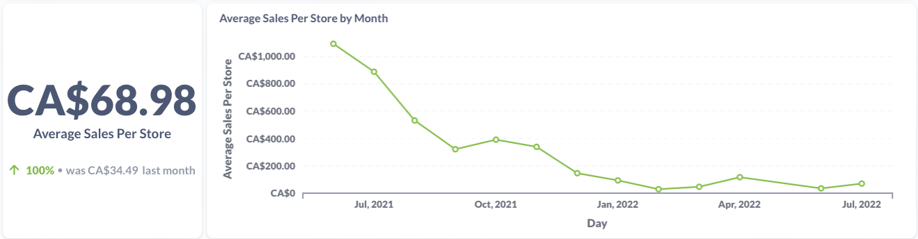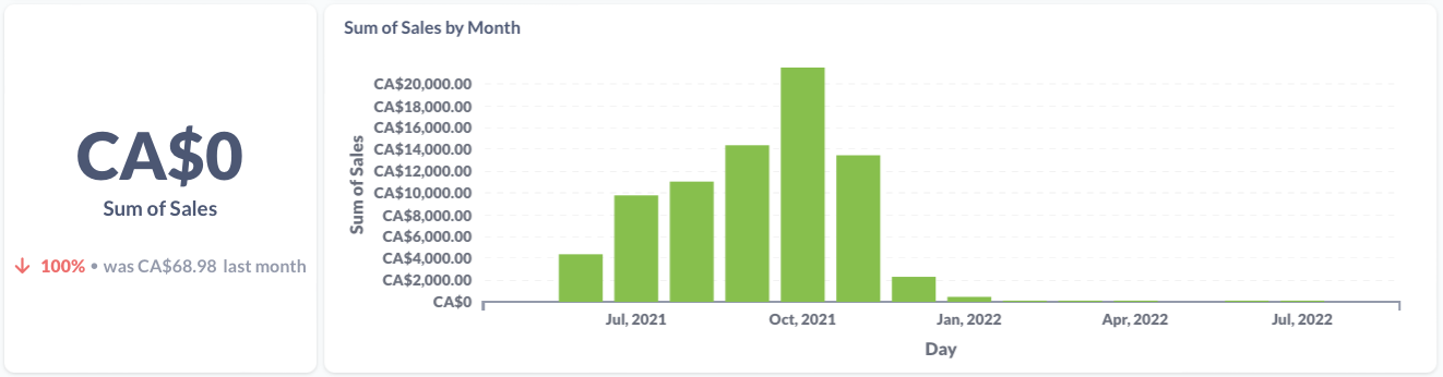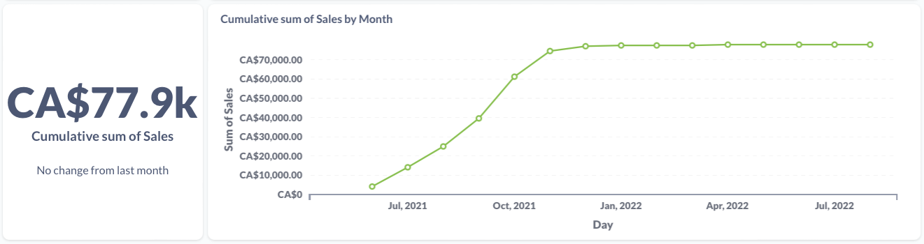 The cumulative sum of tracked sales for this item. The static sum is shown on the left and the monthly sum is shown on right.