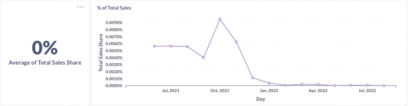 The sum of sales for this item as a percentage of all sales we track. The static average is shown on the left and the monthly average is shown on right.