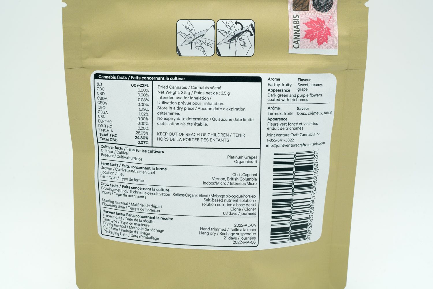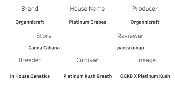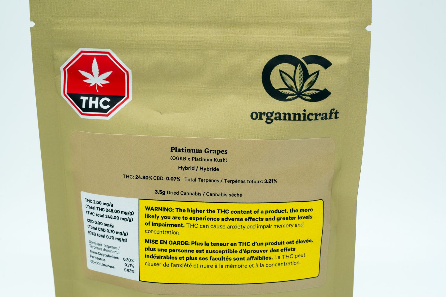 Assuming In House is the breeder here, I’m thinking Platinum Grapes is Organnicraft’s name for their phenotype because In House hasn’t released anything under that name. I’m also confused how Platinum Kush (as listed on the Organnicraft package) differs from In House Platinum, which is a cross of hash plant, Trainwreck, and White Widow.