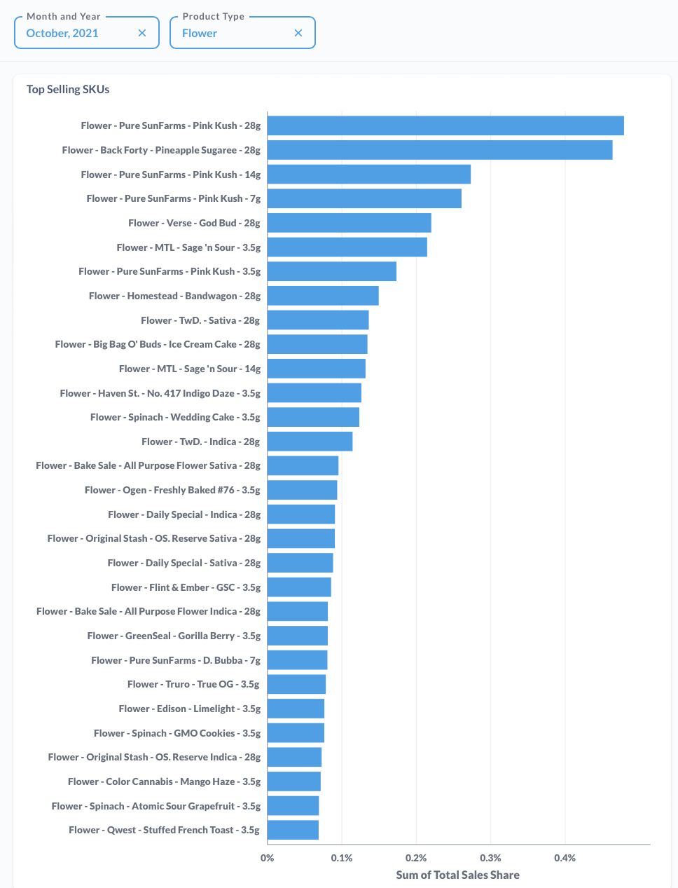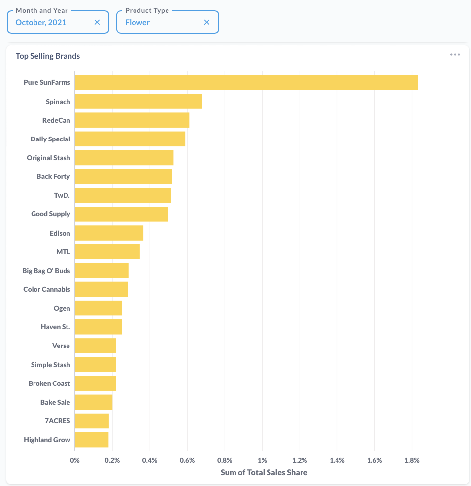 This product did not appear on CannStandard's flower top 30 sellers list for October 2021, the month of highest sales for this product.