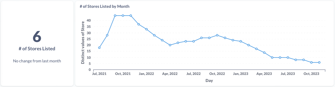 The count of stores we can find this item listed at.