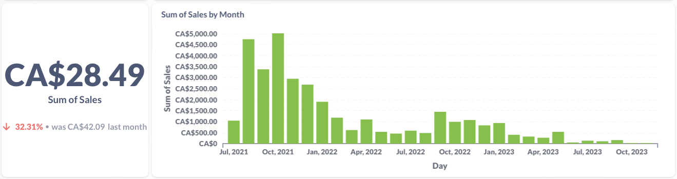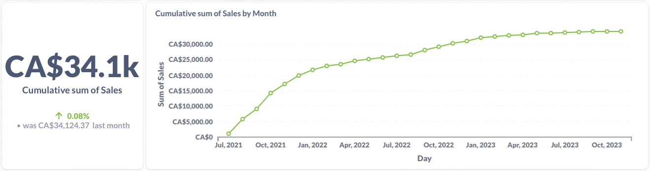 The cumulative sum of tracked sales for this item. The static sum is shown on the left and the monthly sum is shown on right.