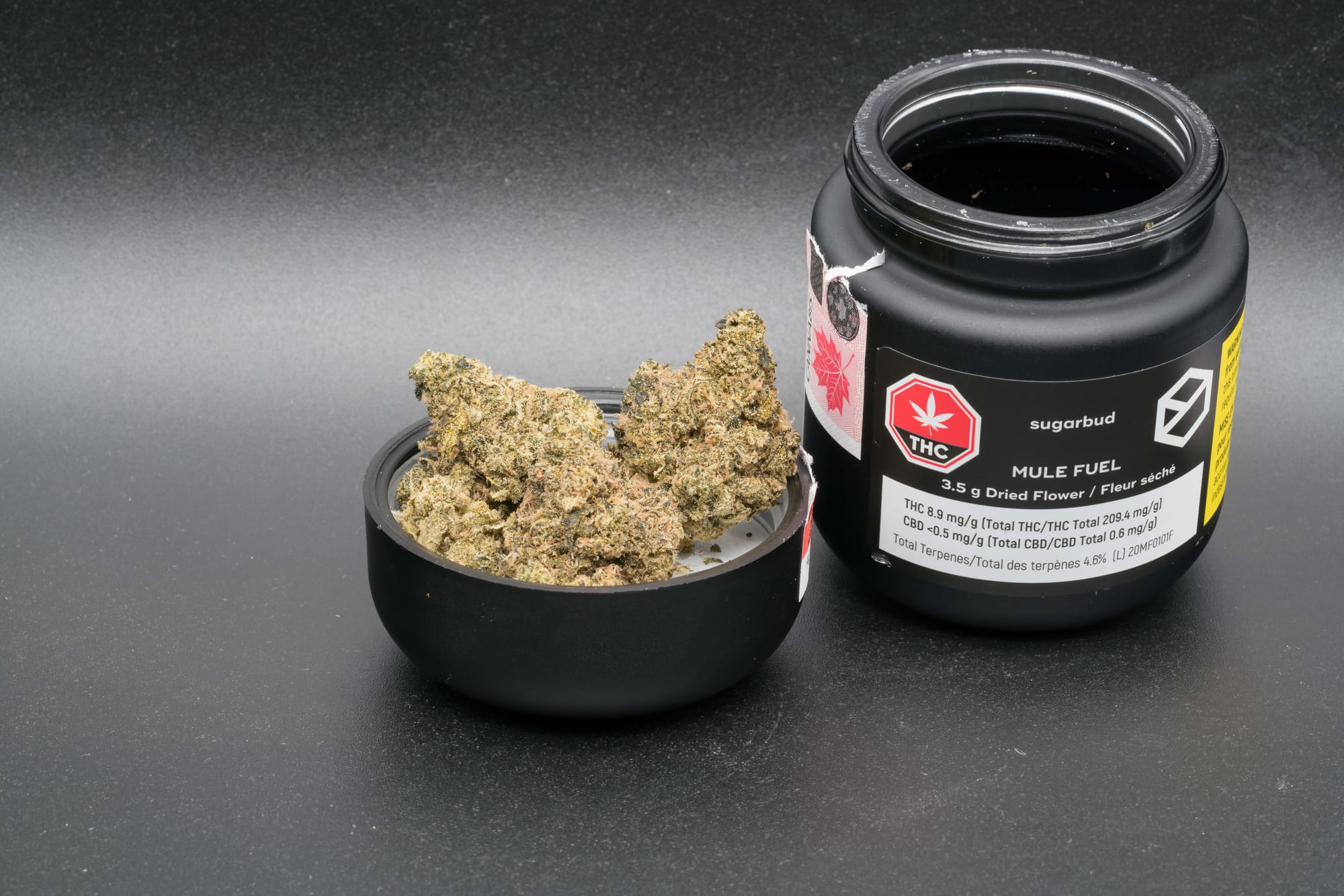 A unique flavour profile is the centrepiece of sugarbud’s rendition of Thug Pug’s Mule Fuel, which brings good quality at a price about 10% over the average I’ve paid for a 3.5g package.