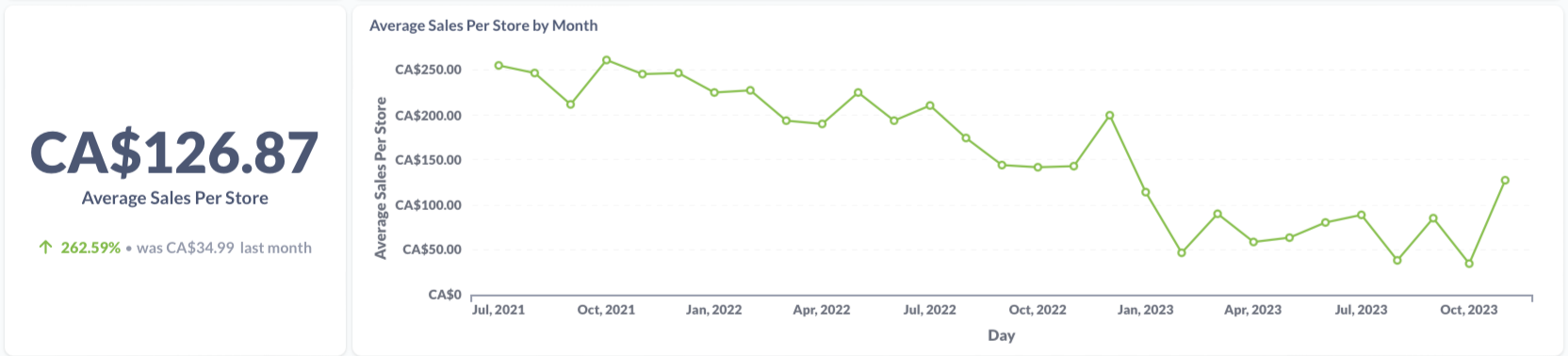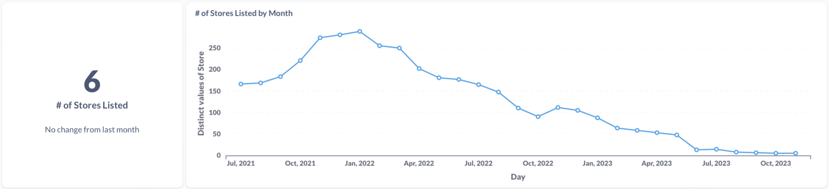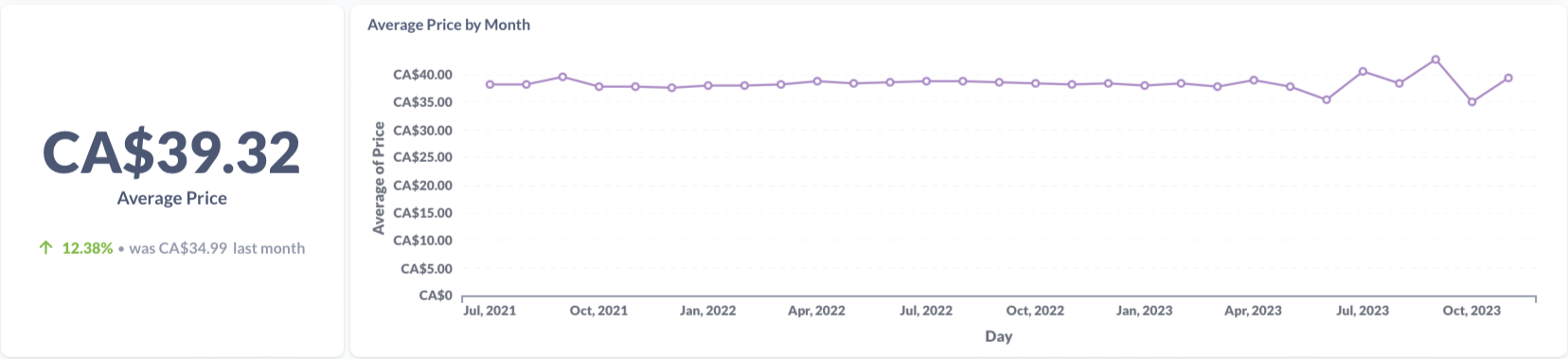 Next we bring in several market measures for this item using data from CannStandard. This data was obtained from public listings for legal cannabis products in Canada. We've provided the data as they were in the last complete month they were available (November 2023).
