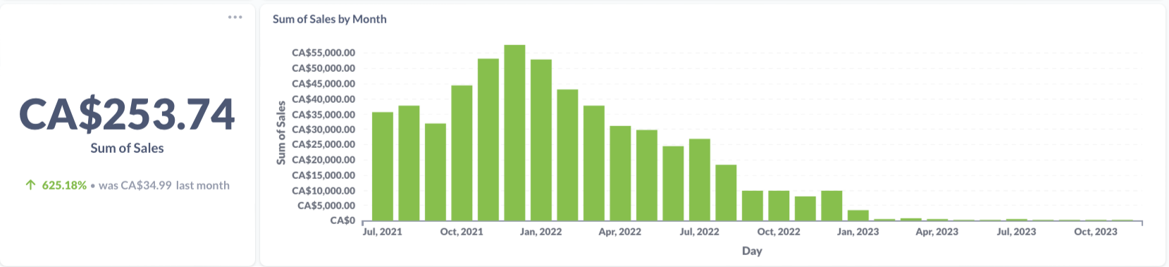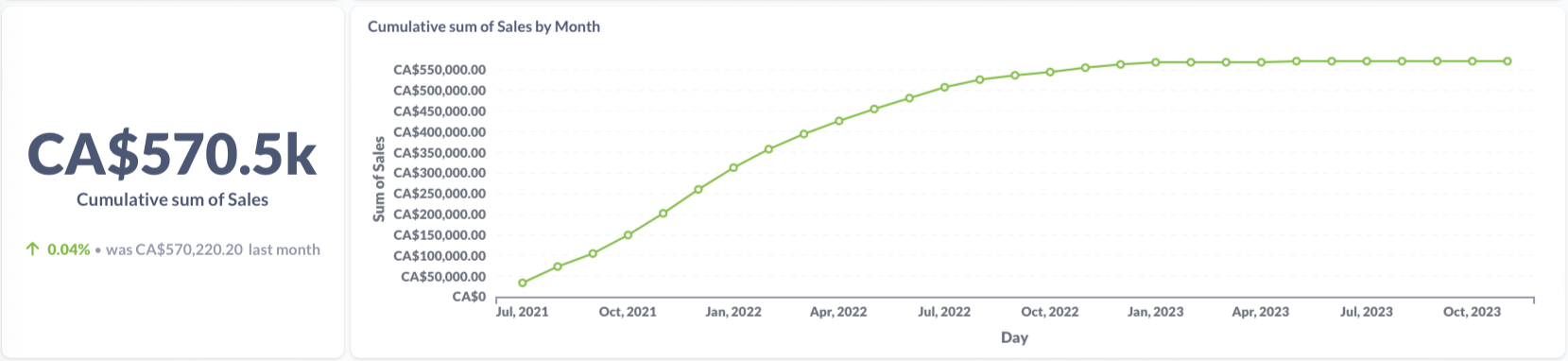 The cumulative sum of tracked sales for this item. The static sum is shown on the left and the monthly sum is shown on right.