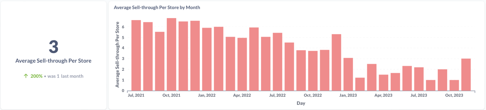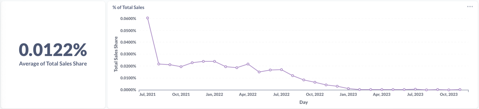 The sum of sales for this item as a percentage of all sales we track. The static average is shown on the left and the monthly average is shown on right.