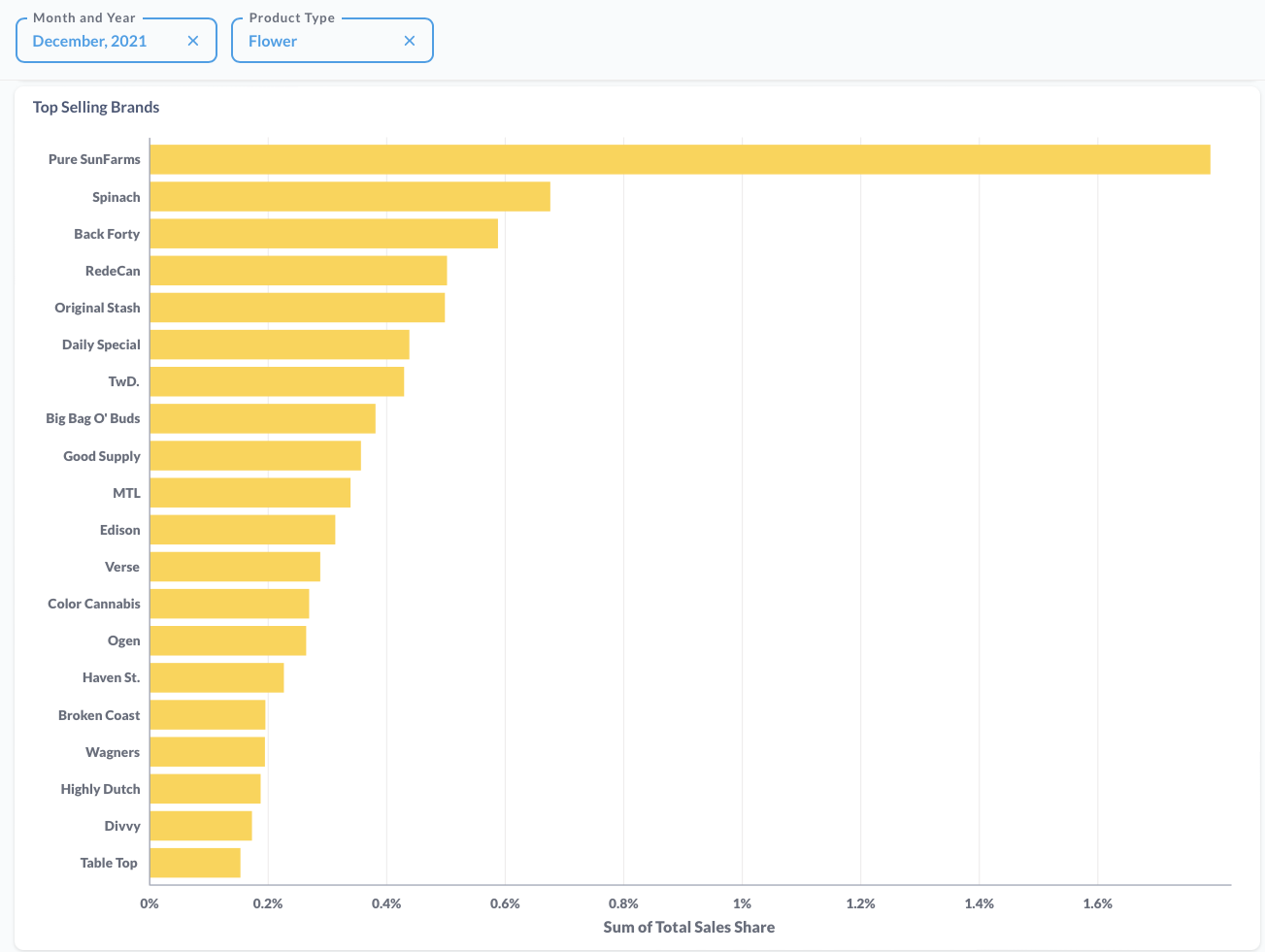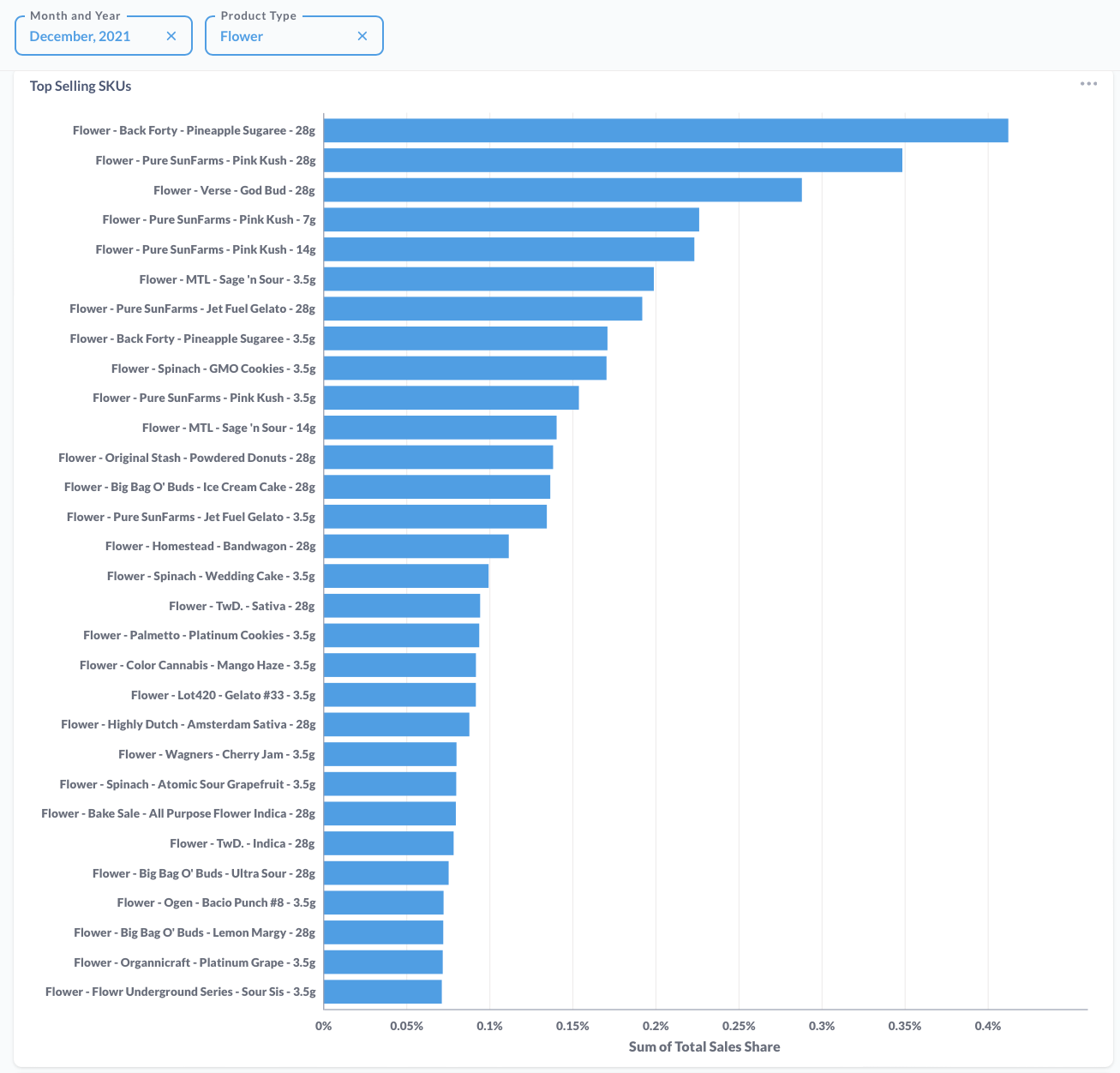 sugarbud Mule Fuel didn't rank on CannStandard's flower top 30 sellers list for December 2021.