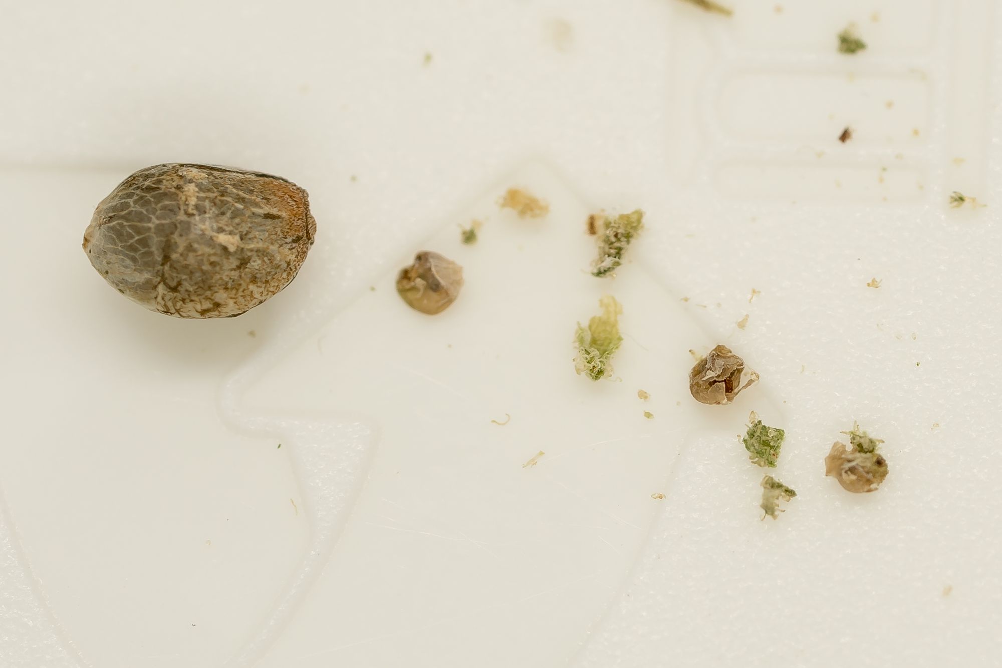 When I look at it, I can’t help but feel like this bud was about to make seeds. Some of the calyxes look to have small keratinous formations towards the centre and when ground, the particulate is visible. So I skipped on smoking it.