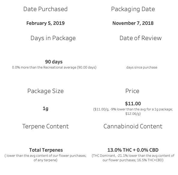 This Warlock is $11 per single gram. Although the profile is nice, there is better quality available around this price point. For Skunk tones, I’d look towards THC BioMed’s Landrace Sativa around $6 or spending a bit more for Tantalus Lab’s Serratus, both have more stringent profiles but offer tremendously more quality. AltaVie’s Cabaret also has a similar profile, but I wouldn’t recommend it based on my experience.